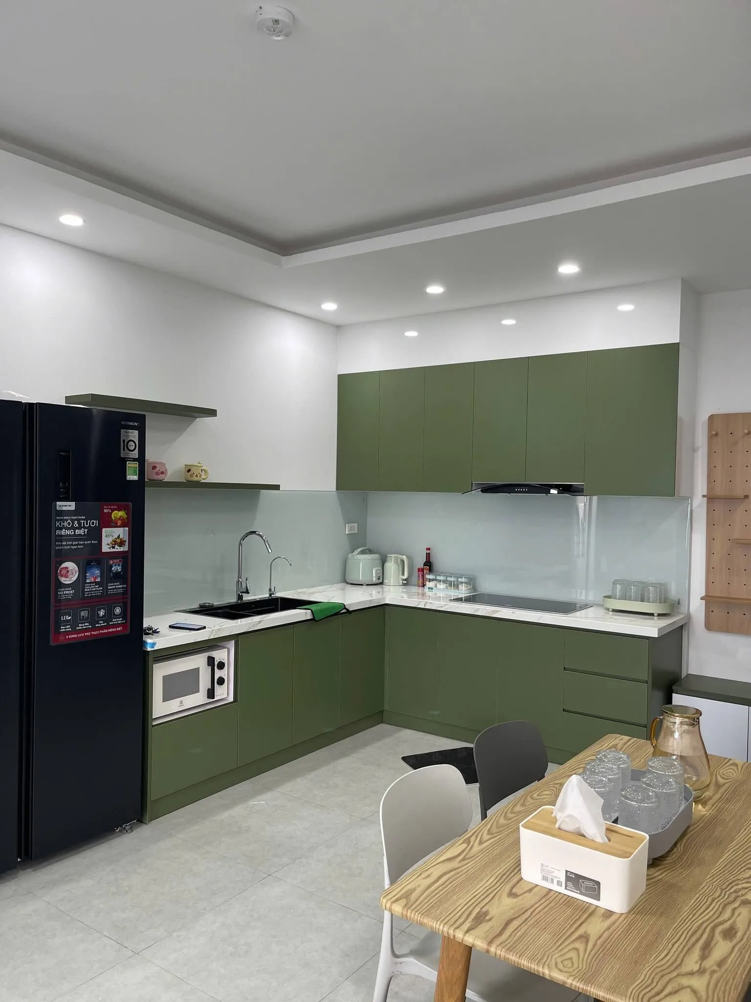 - Tiện nghi đầy đủ: Cung cấp đầy đủ tiện nghi sinh hoạt như máy giặt, máy sấy, bếp nấu ăn, tivi, internet và truyền hình cáp miễn phí.