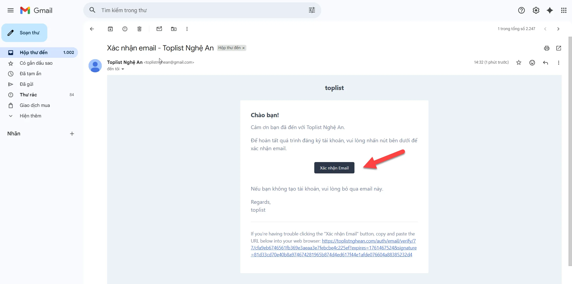 3. Bước 3: Truy cập email và click vào “Xác nhận Email” để hoàn tất quá trình đăng ký.