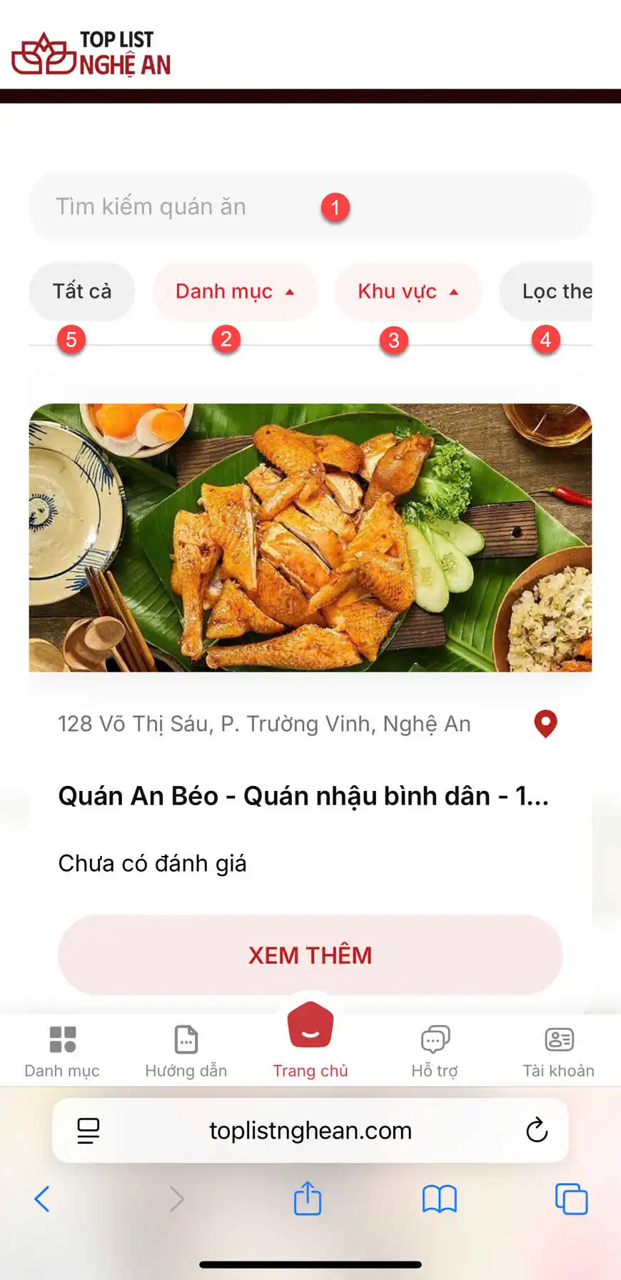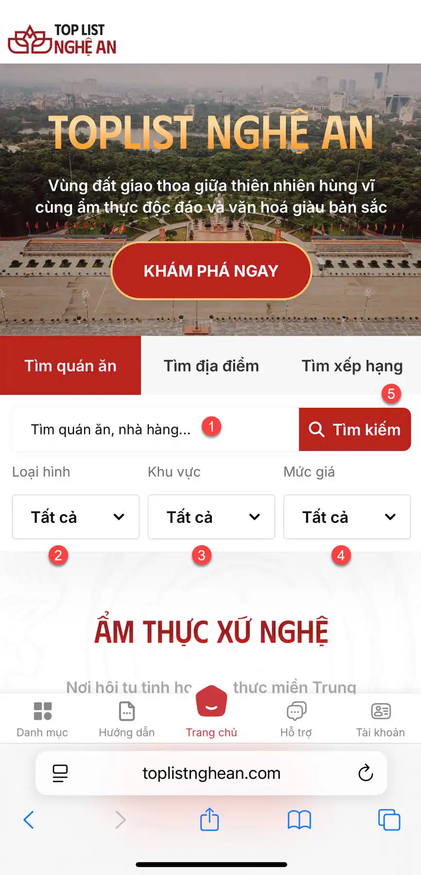 Chào mừng các bạn đến với topic "Hướng dẫn tra cứu/tìm kiếm trên website Toplistnghean.com". Tại đây chúng tôi sẽ hướng dẫn các bạn tìm kiếm mọi thông tin về địa điểm, nhà hàng/quán ăn, khách sạn, homestay hay các địa điểm vui chơi trên địa bàn toàn tỉnh.