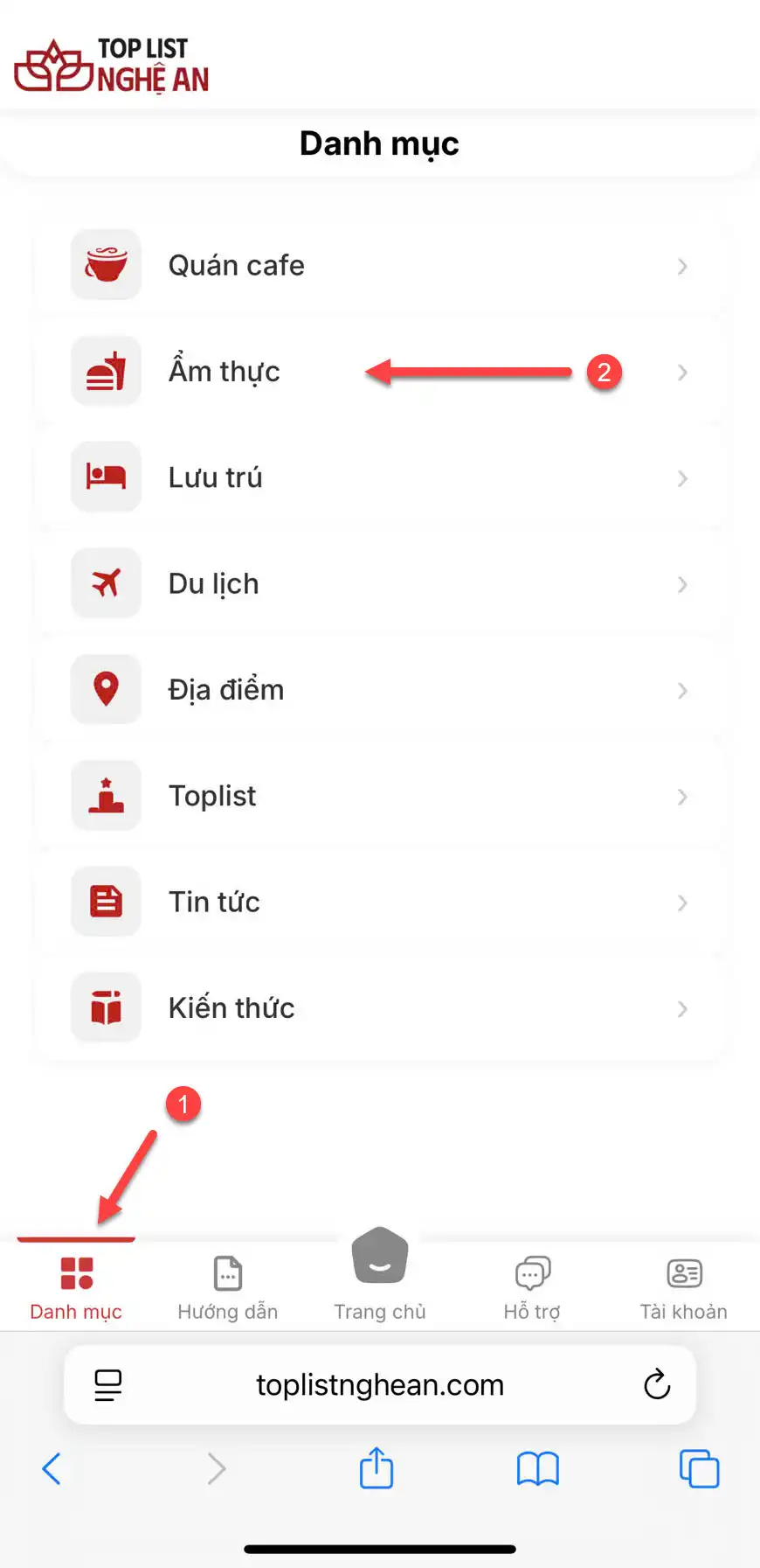 Tương tự như các phần ở trên, các bạn cũng có thể tra cứu từ trang chủ hoặc truy cập danh mục Du lịch: https://toplistnghean.com/du-lich