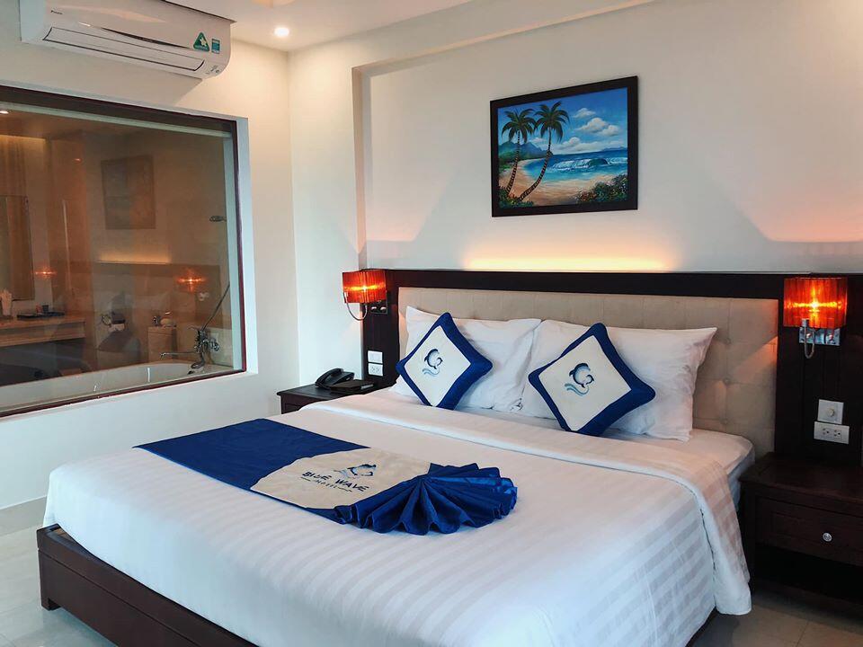 Blue Wave Cửa Lò sở hữu hệ thống phòng nghỉ đa dạng, thiết kế hiện đại, trang bị đầy đủ tiện nghi như điều hòa, TV màn hình phẳng, minibar và wifi miễn phí. Nhiều phòng có ban công hướng biển, giúp du khách tận hưởng không khí trong lành và cảnh sắc thiên nhiên tươi đẹp. Ngoài ra, khách sạn còn có nhà hàng phục vụ bữa sáng, quầy lễ tân 24/24 và các dịch vụ hỗ trợ khách hàng chuyên nghiệp.