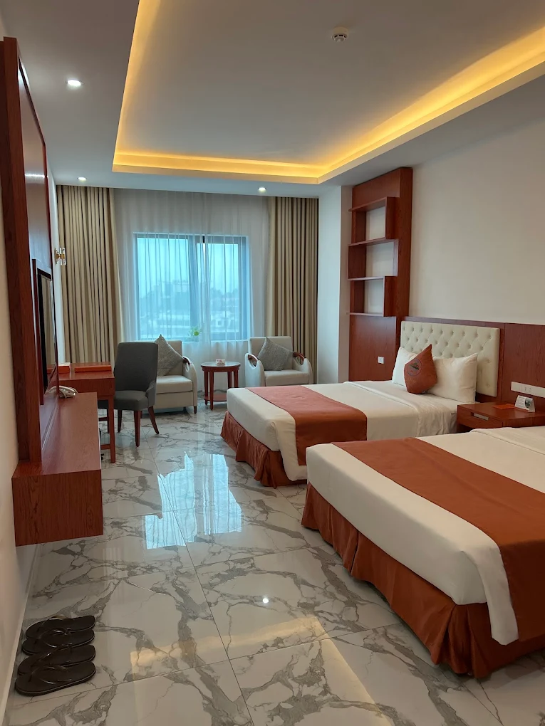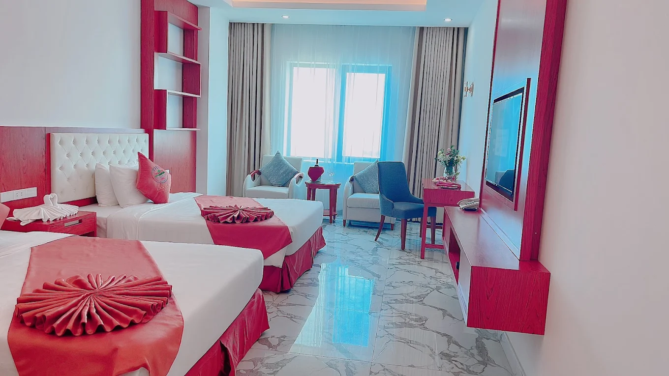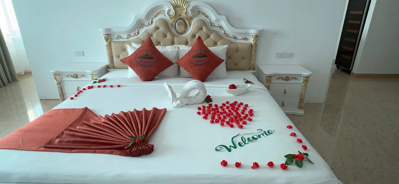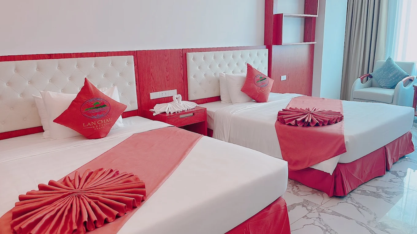 Khách sạn sở hữu gần 200 phòng nghỉ cao cấp thiết kế theo phong cách tân cổ điển pha kiến trúc Pháp, với đầy đủ tiện nghi hiện đại và view hướng biển hoặc núi. Ngoài ra, khách sạn Lan Châu còn có bãi tắm riêng tuyệt đẹp – bãi Ngọc, cùng hàng loạt tiện ích như: spa, phòng gym, bể bơi ngoài trời, khu vui chơi và nhiều hoạt động giải trí trên biển.