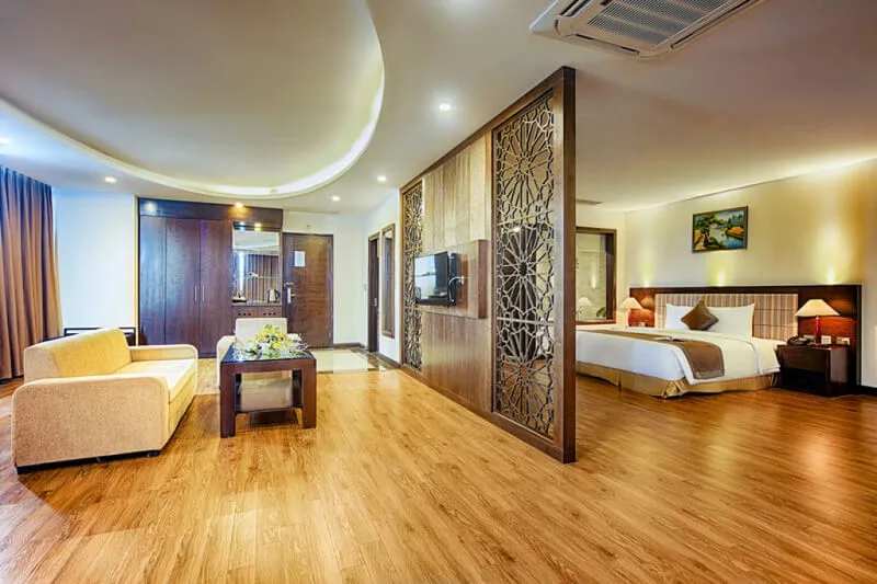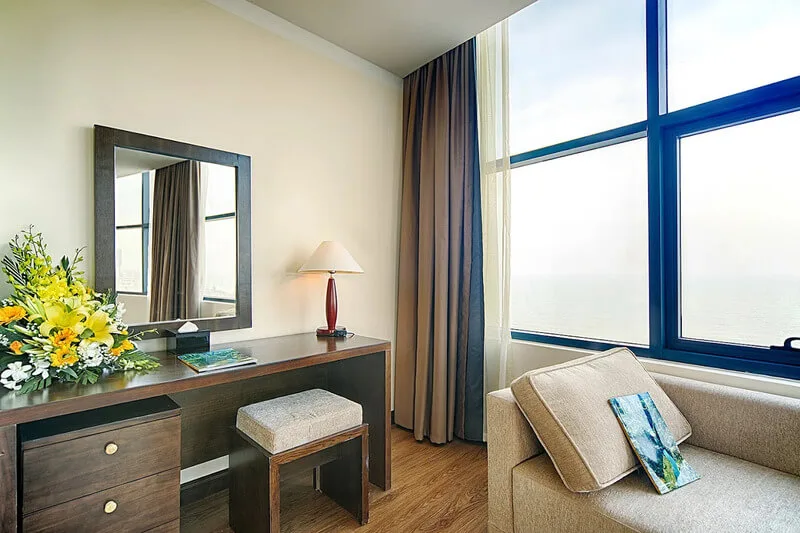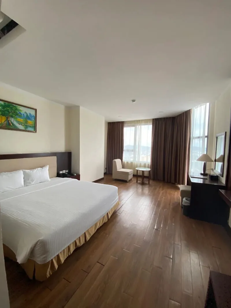 Về tiện ích, khách sạn nổi bật với khu bể bơi ngoài trời rộng rãi, được thiết kế hài hoà cho cả người lớn và trẻ em, mang đến không gian thư giãn thoải mái cho mọi thành viên trong gia đình. Hệ thống phòng nghỉ tại đây đều có ban công thoáng đãng, với hai lựa chọn tầm nhìn: hướng biển thơ mộng hoặc hướng phố nhộn nhịp, giúp du khách tận hưởng trọn vẹn cảnh sắc Cửa Lò từ trên cao.