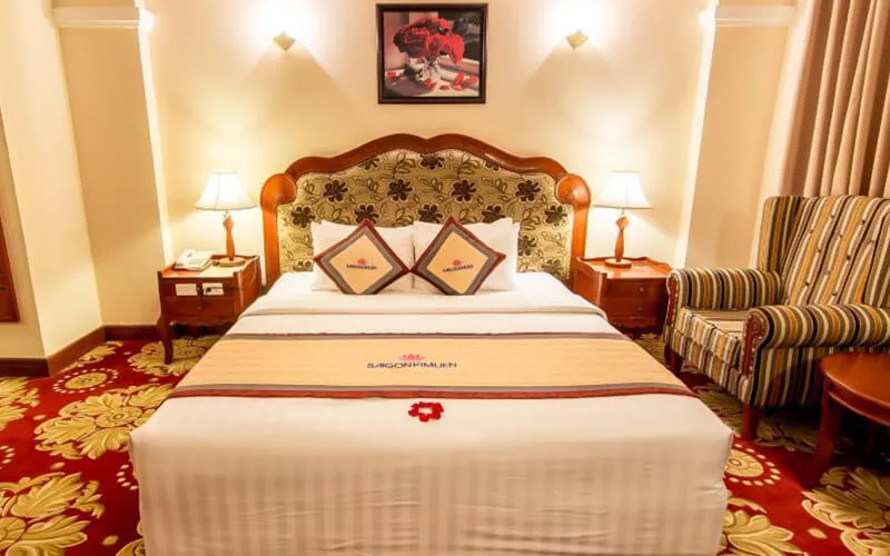 Nội thất trong mỗi phòng được trang bị đầy đủ các tiện nghi hiện đại theo tiêu chuẩn 4 sao như TV truyền hình cáp, điều hòa, minibar, két an toàn, và phòng tắm riêng có bồn tắm hoặc vòi sen. Không gian phòng nghỉ tại Sài Gòn Kim Liên Resort là sự kết hợp hài hòa giữa tiện nghi hiện đại và sự gần gũi với thiên nhiên mang đến cho du khách những giờ phút nghỉ ngơi riêng tư, yên tĩnh và trọn vẹn sau một ngày dài khám phá biển Cửa Lò.