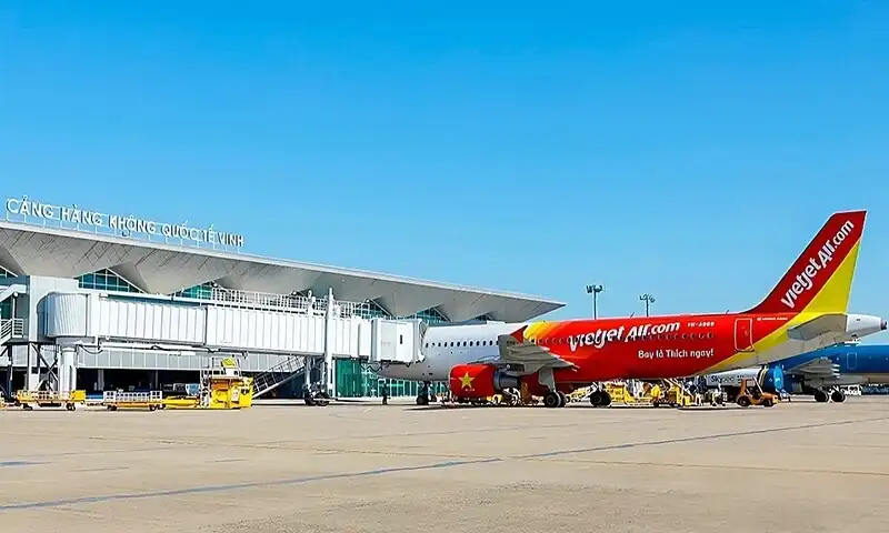 Nằm cách trung tâm TP. Vinh khoảng 8km, sân bay quốc tế Vinh có đường băng dài 2.400m, sân đỗ đáp ứng 7 vị trí máy bay. Nhà ga 2 tầng hiện đại với 4 cửa ra máy bay, phục vụ tốt nhu cầu đi lại của hành khách trong và ngoài khu vực.