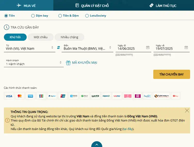 Hiện nay, người dùng có thể dễ dàng đặt vé máy bay Vinh – Buôn Ma Thuột thông qua nhiều kênh khác nhau. Dưới đây là các cách phổ biến và tiện lợi nhất: