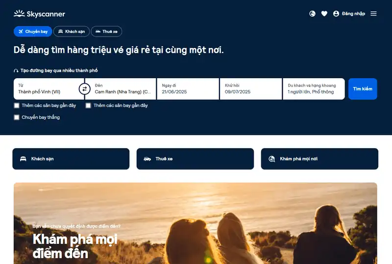 Các nền tảng như Traveloka, Abay, Trip.com, hoặc Vé máy bay giá rẻ cung cấp công cụ tìm kiếm tổng hợp. Chỉ cần nhập thông tin một lần, bạn sẽ thấy lịch bay của nhiều hãng hàng không cùng lúc, giúp dễ dàng so sánh và lựa chọn.