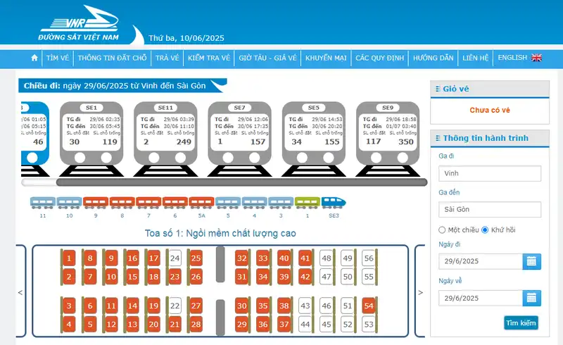Tàu hỏa là phương tiện được nhiều người lựa chọn khi di chuyển từ Vinh vào Sài Gòn nhờ sự an toàn, ổn định và chi phí hợp lý. Để giúp bạn chủ động trong việc lên kế hoạch di chuyển, dưới đây là 4 cách đặt vé phổ biến và thuận tiện nhất hiện nay: