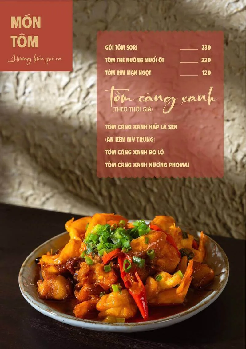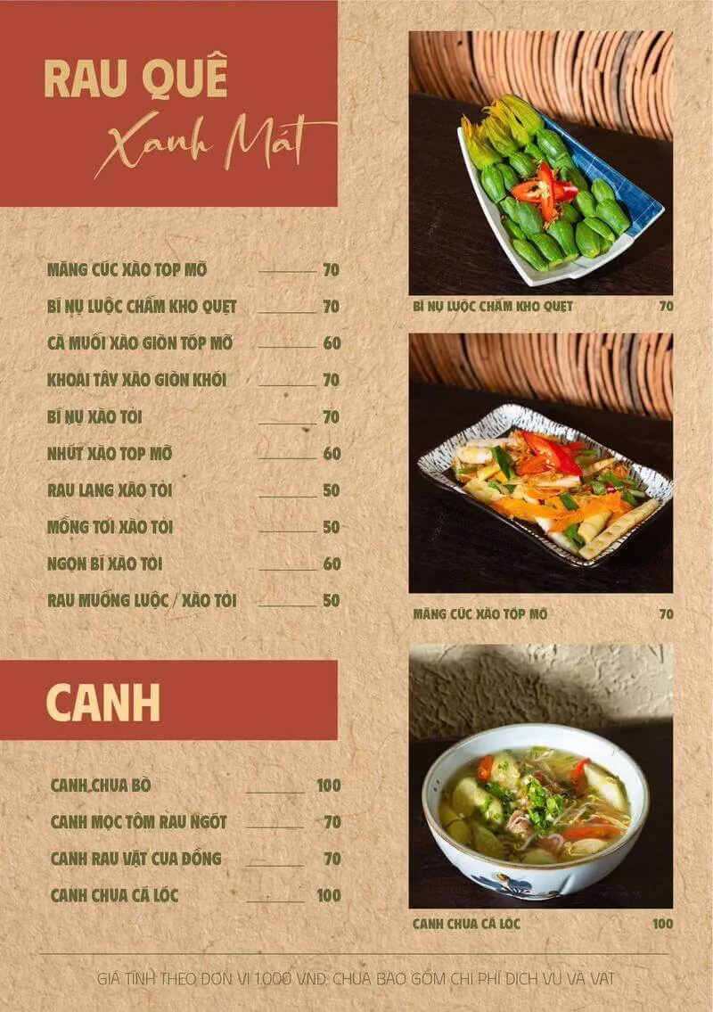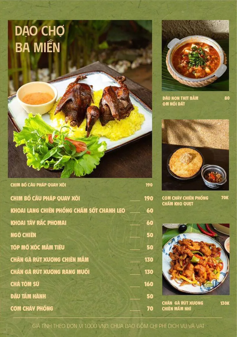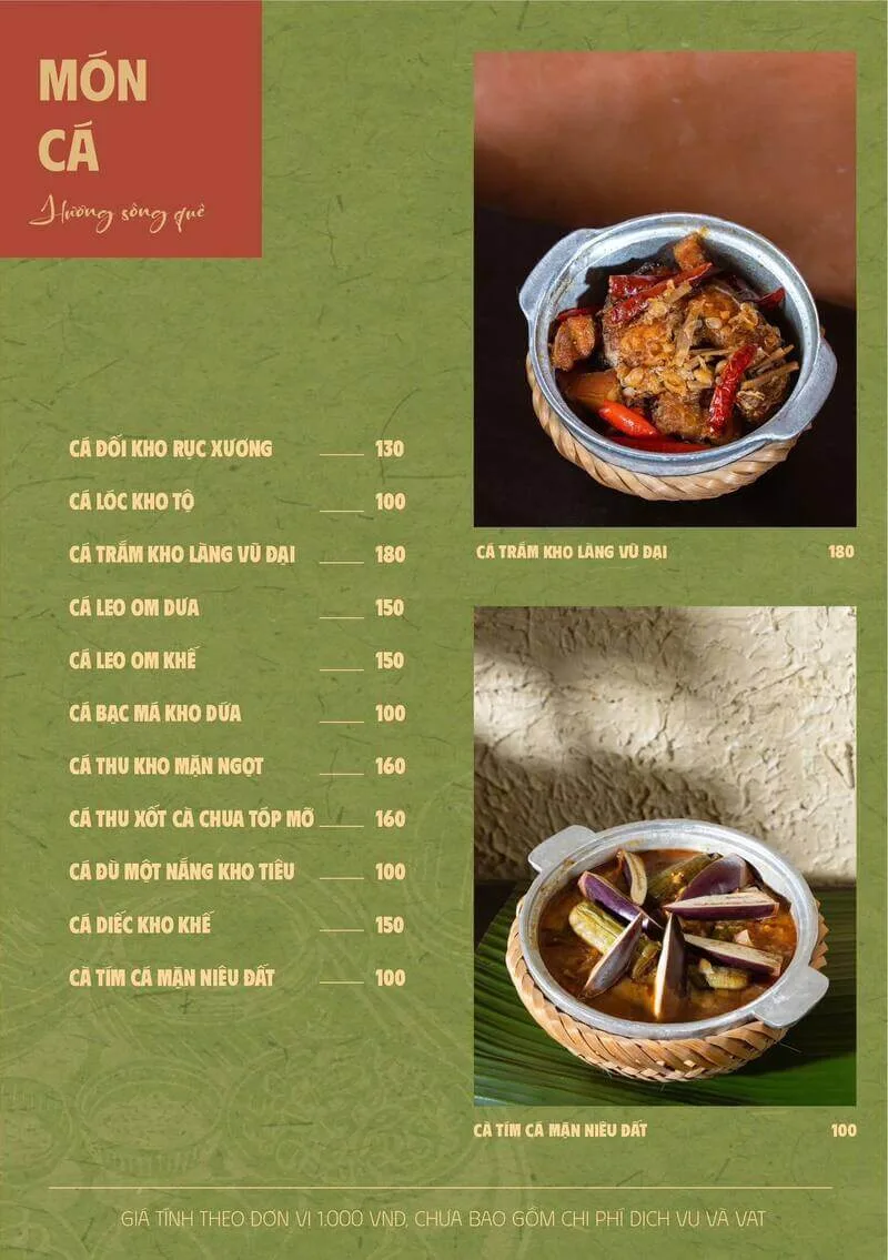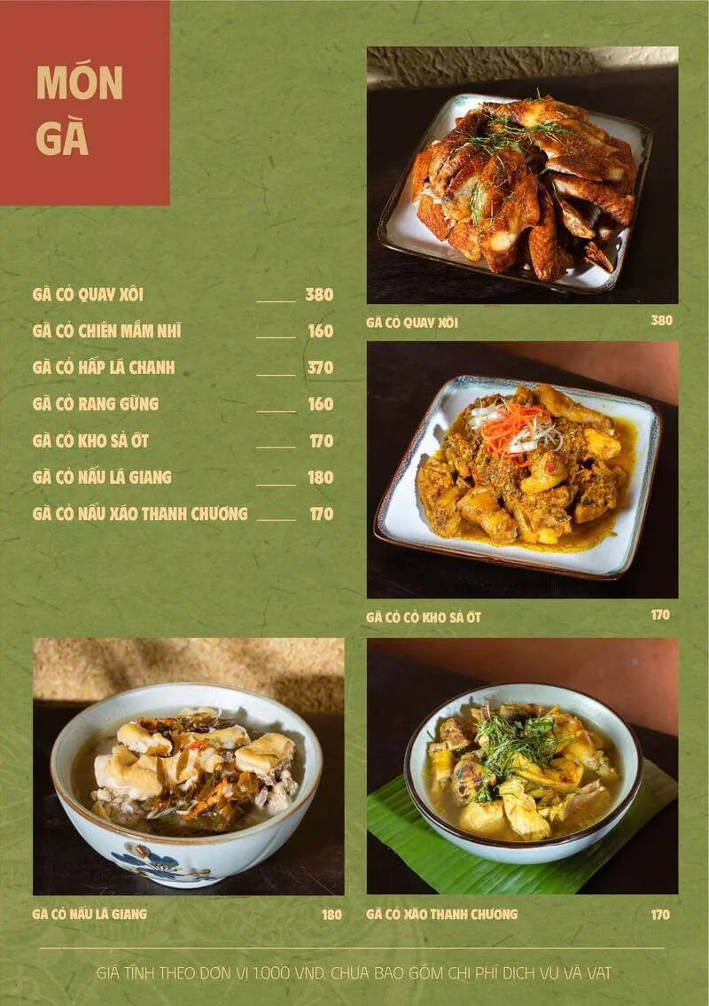 2. Món đặc sắc: Các món ăn như "Gà hấp lá chanh", "Cá lóc nướng", "Lẩu bò"... được đông đảo khách hàng đánh giá cao.
