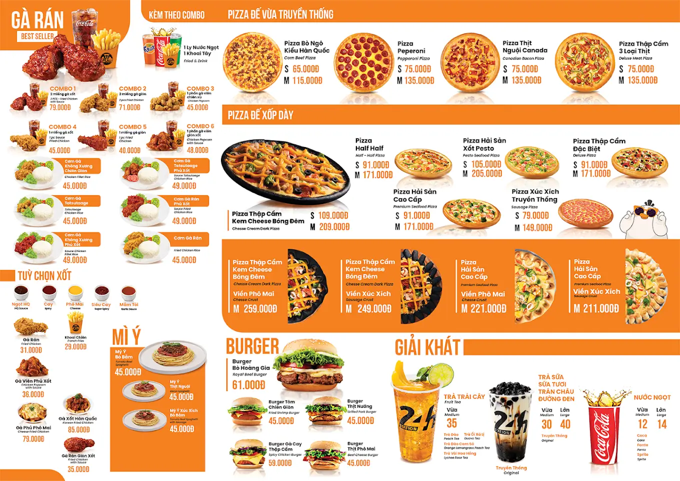 1. Loại hình: Chuỗi cửa hàng đồ ăn nhanh, phục vụ các món phương Tây như pizza, gà rán, hamburger và trà sữa.