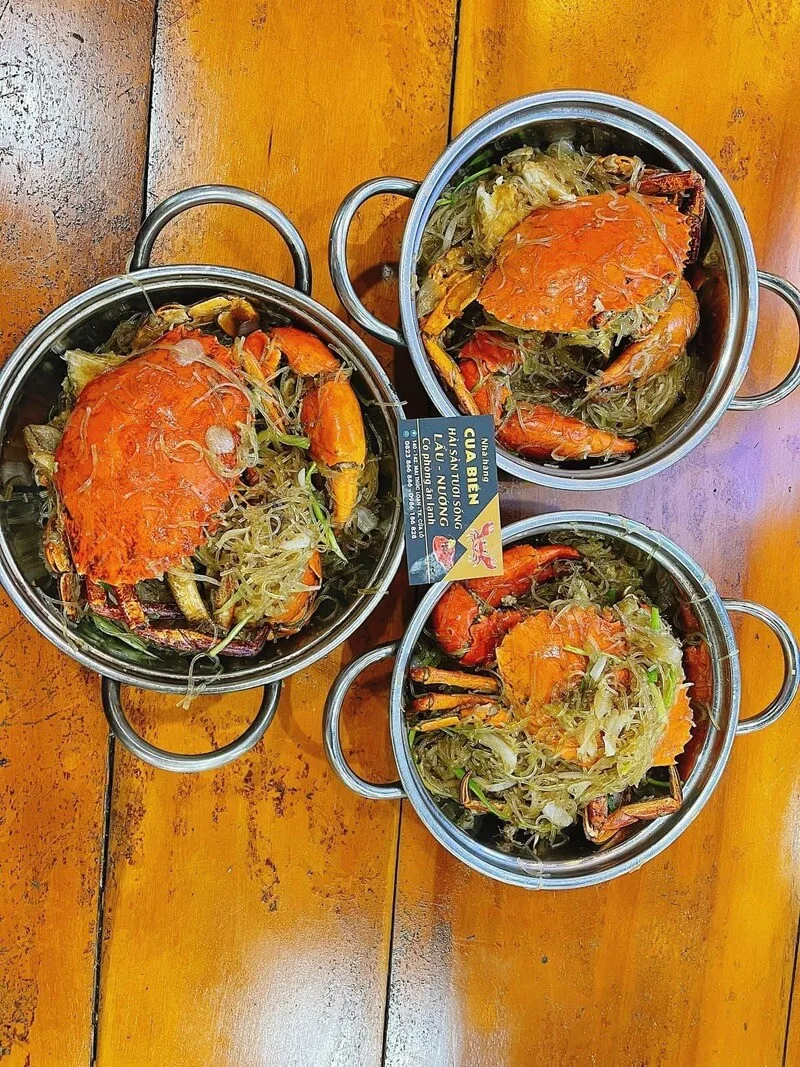 2. Món đặc sắc: Đúng như tên gọi, món ăn nổi bật và được nhiều thực khách khen ngợi tại đây là các món chế biến từ cua biển tươi, chắc thịt. Ngoài ra, nhà hàng cũng phục vụ các đặc sản không thể bỏ lỡ của Cửa Lò như ghẹ rang me, mực "nháy" hấp, tôm sú nướng và các loại ốc, sò phong phú.
