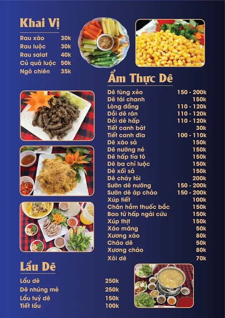 - Thực đơn đa dạng: Hơn 20 món dê khác nhau để lựa chọn.