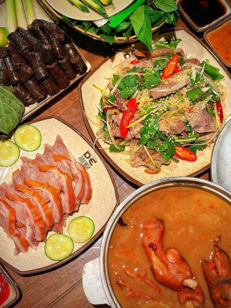 Tọa lạc tại 213 Xô Viết Nghệ Tĩnh, Nhà hàng Dê Thui Nứa là một "thiên đường" dành cho các tín đồ yêu thích đặc sản thịt dê. Với thực đơn cực kỳ phong phú, từ món dê thui trứ danh, tiết canh, lẩu dê cho đến các món bồi bổ như ngọc dương tần thuốc bắc, quán là điểm đến lý tưởng cho những buổi tụ họp bạn bè và các bữa ăn gia đình chất lượng.