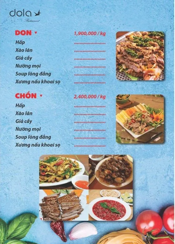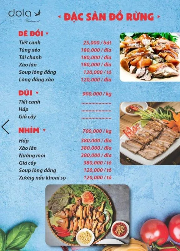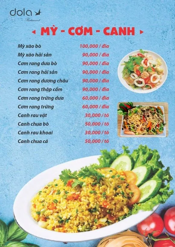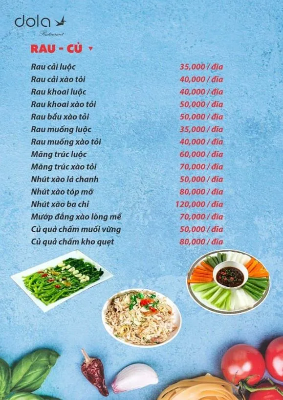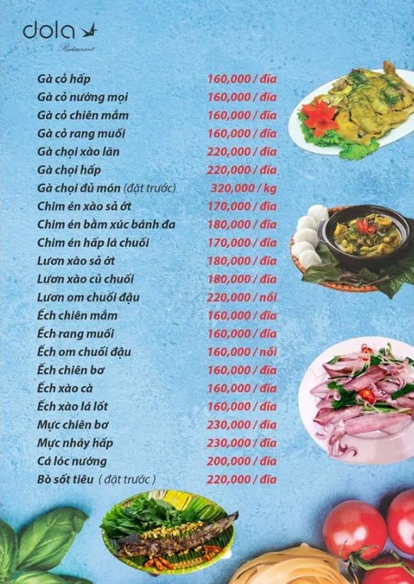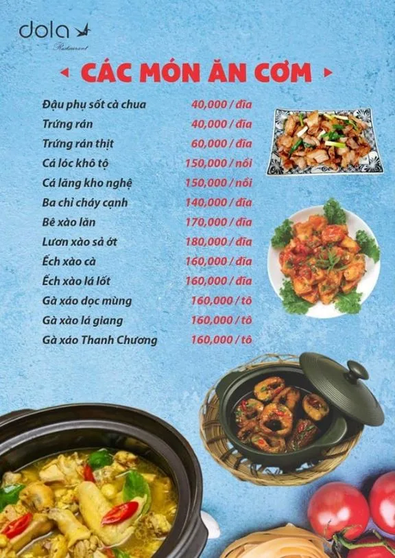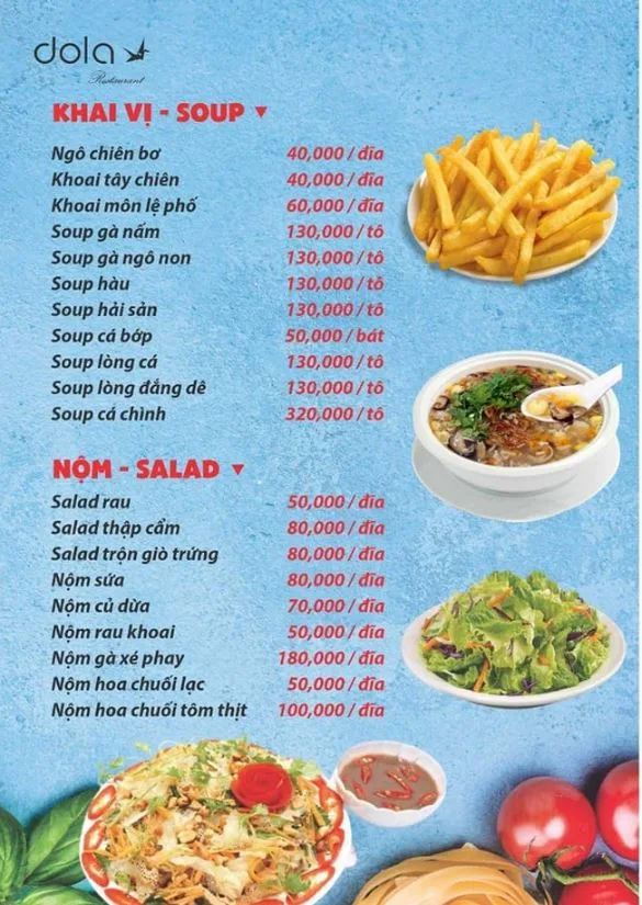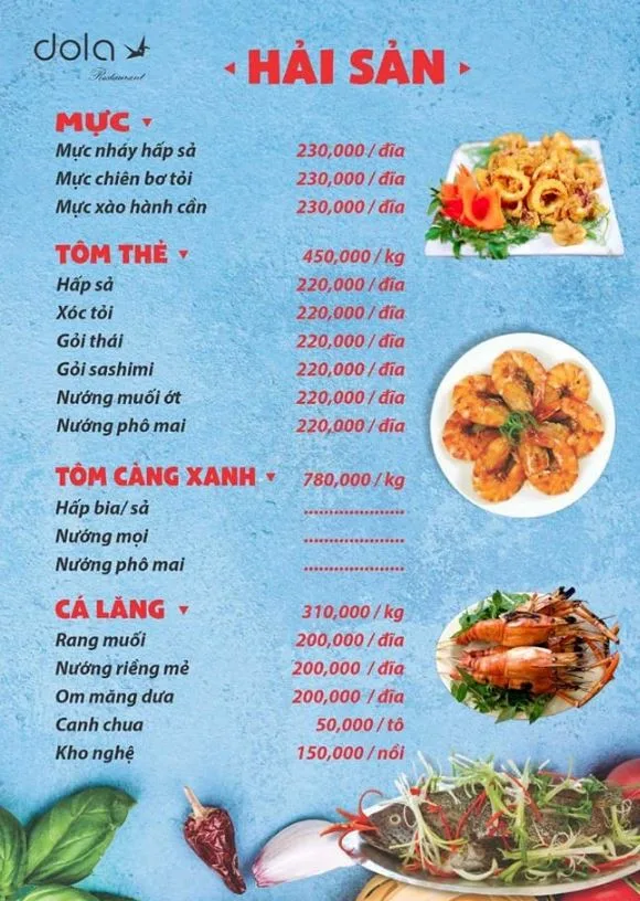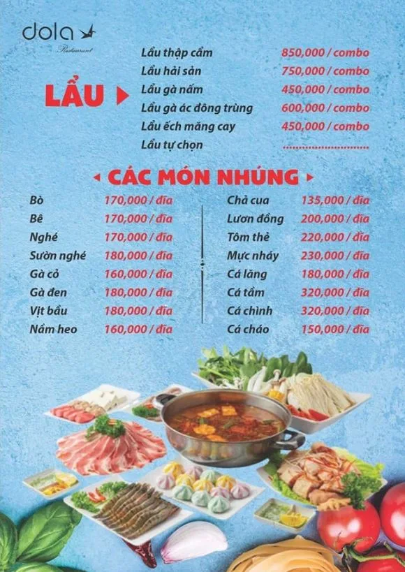 Tọa lạc tại 120 Hồ Bá Kiện, Nhà hàng Dola là một quán nhậu "phủi" đúng chất, chuyên phục vụ các món ăn dân dã, quen thuộc của ẩm thực Việt Nam. Với thực đơn phong phú, giá cả bình dân và không khí gần gũi, đây là địa điểm lý tưởng cho các buổi tụ họp bạn bè, đồng nghiệp sau giờ làm việc.