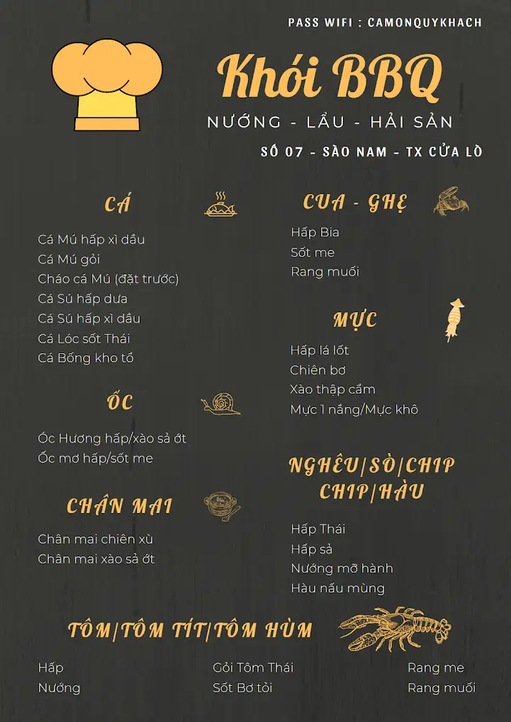 Tọa lạc tại Cửa Lò, Nhà Hàng Khói là một địa điểm ẩm thực chuyên về các món lẩu, nướng và hải sản tươi sống. Với thực đơn đa dạng phù hợp cho cả những ngày nắng nóng hay mưa lạnh, đây là điểm đến lý tưởng cho du khách và người dân địa phương sau những giờ vui chơi tại bãi biển.
