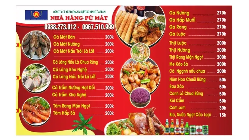 Nhà Hàng Pù Mát chuyên các món đặc sản dân tộc Thái, bao gồm:
