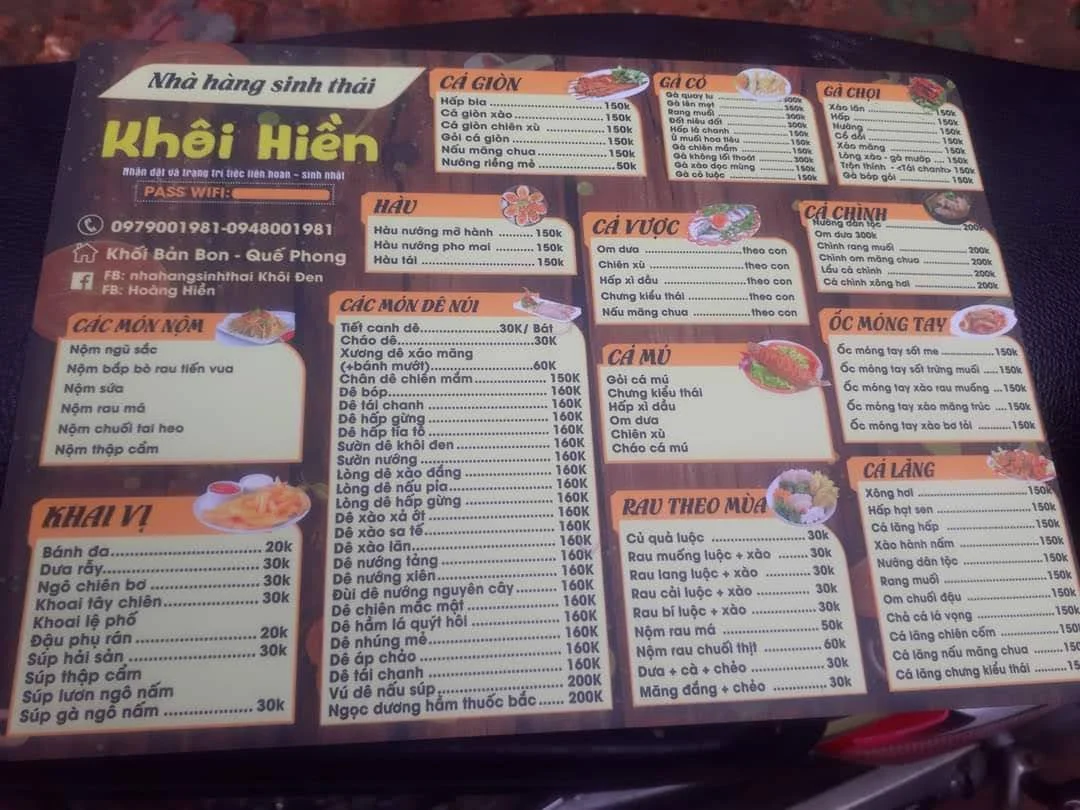 Nhà hàng Sinh Thái Khôi Hiền là một điểm đến ẩm thực và nghỉ chân lý tưởng tại huyện Quế Phong, Nghệ An. Với không gian sinh thái xanh mát, các món ăn ngon, giá cả hợp lý và cảnh quan đẹp, nhà hàng là điểm dừng chân được nhiều du khách yêu thích khi đến vùng đất này.