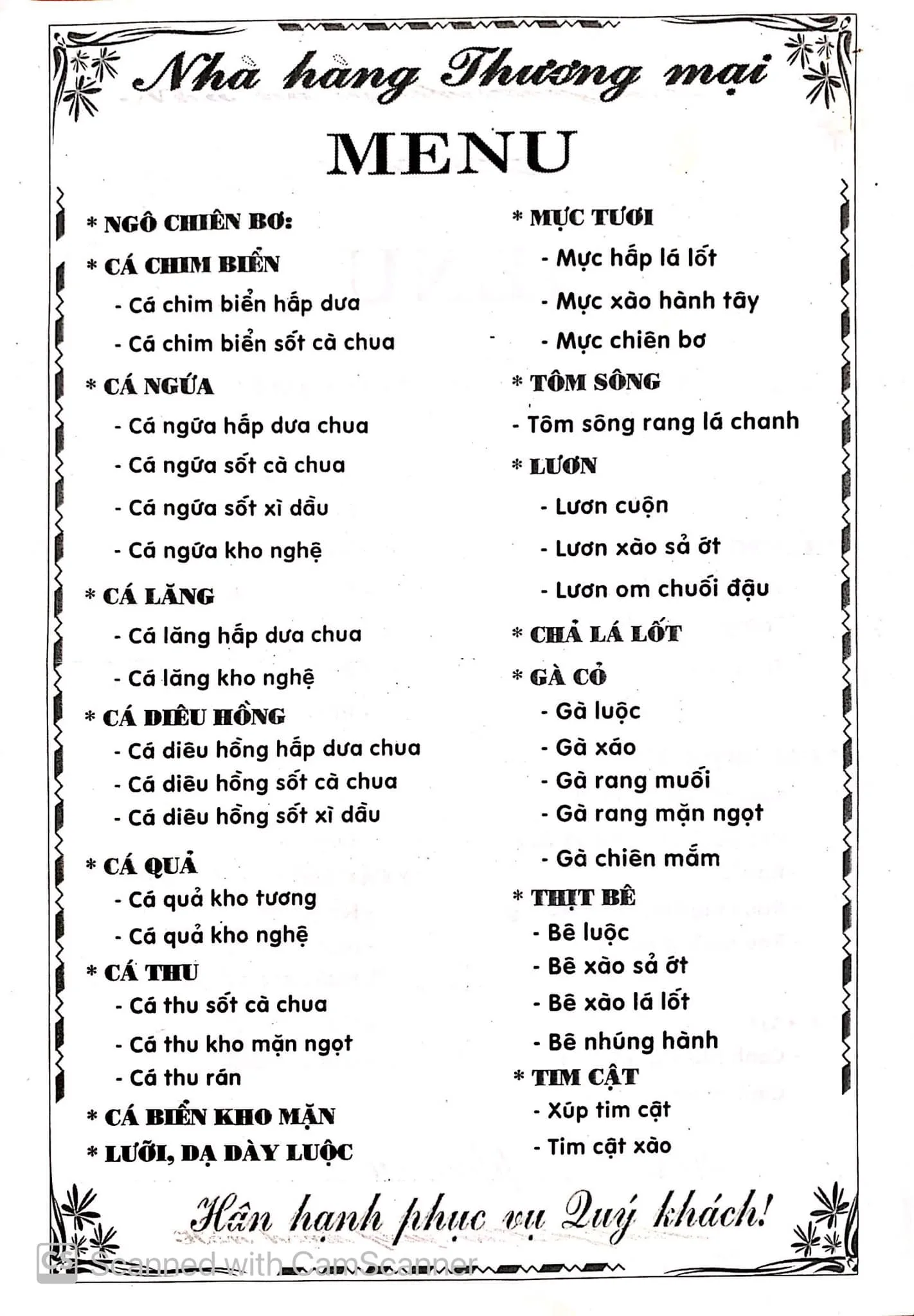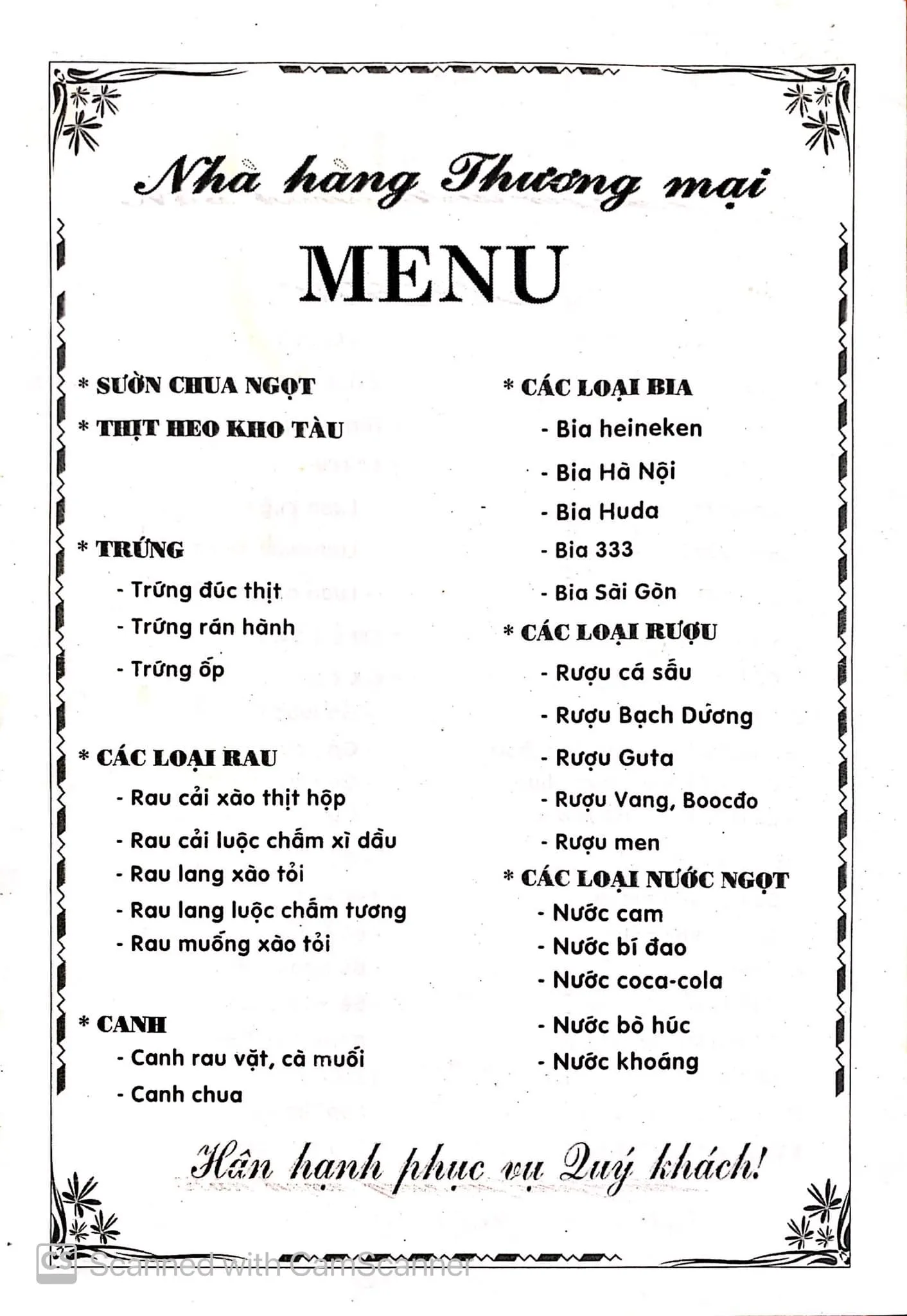Nhà hàng Thương Mại là một địa điểm quen thuộc tại thành phố Vinh, nổi tiếng với các món ăn bình dân, mang đậm màu sắc ẩm thực xứ Nghệ. Với không gian ấm cúng, thoáng đãng và giá cả hợp lý, nhà hàng là lựa chọn phù hợp cho những bữa ăn gia đình, tụ tập bạn bè hoặc các buổi liên hoan.