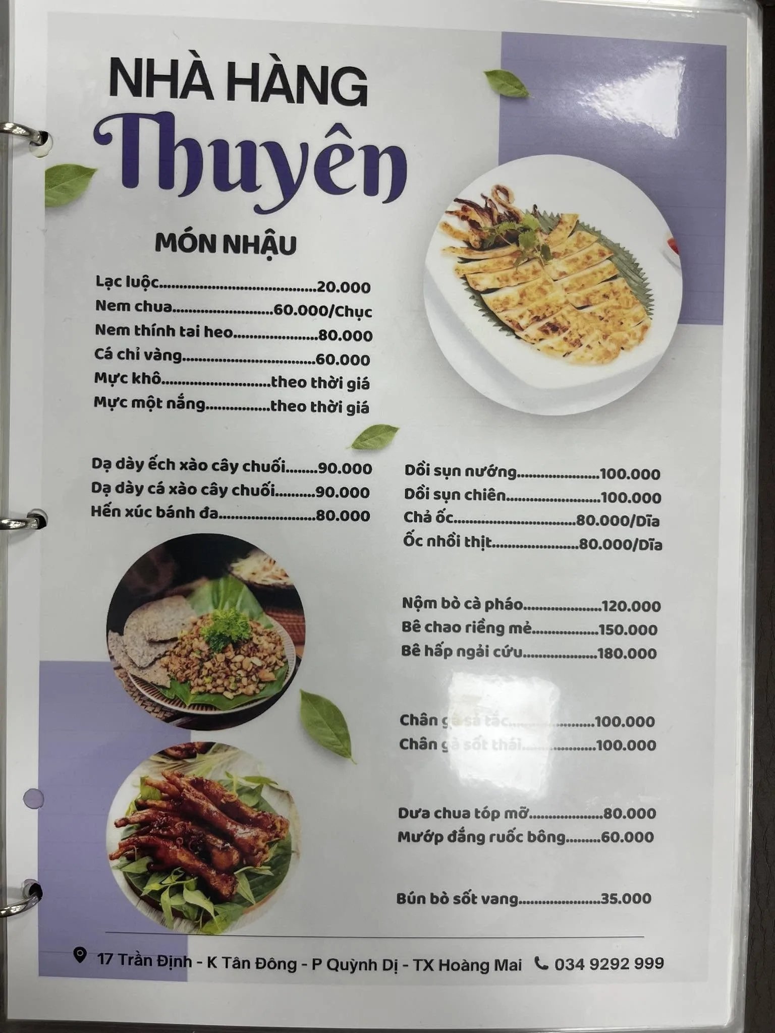 Nhà hàng Thuyên là một địa điểm ăn uống tại thị xã Hoàng Mai, Nghệ An, nổi tiếng với các món ăn tươi ngon, chất lượng cùng giá cả hợp lý. Với không gian rộng rãi và thoáng mát, nhà hàng là lựa chọn tin cậy cho các bữa ăn gia đình, tụ tập bạn bè hoặc tổ chức các buổi liên hoan, sự kiện đặc biệt.