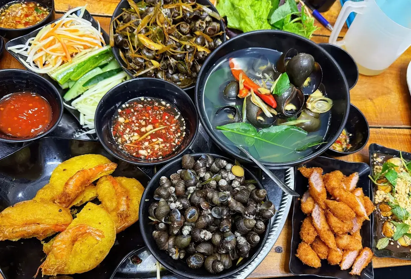Thực đơn tại đây nổi bật với các món ốc được chế biến đậm đà, thấm vị. Khi thưởng thức món ốc xào cay, bạn sẽ cảm nhận được vị ngọt tự nhiên của ốc hòa quyện cùng nước sốt sền sệt, cay nồng đầu lưỡi. Món ngao hấp giữ trọn độ ngọt thanh, thơm mùi sả gừng, trong khi sò nướng mỡ hành béo ngậy lại kích thích vị giác bởi lớp hành phi giòn tan.