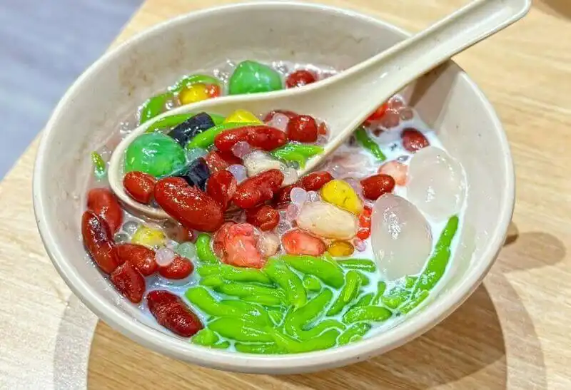 Chè tại đây có vị ngọt thanh, mát lành, không hề gắt cổ. Quán sử dụng hoàn toàn nguyên liệu tự nhiên: màu xanh từ lá dứa, màu đỏ từ củ dền. Món Chè thập cẩm là sự hòa quyện tuyệt vời của các loại đậu bùi bùi, thạch giòn dai và nước cốt dừa béo ngậy.