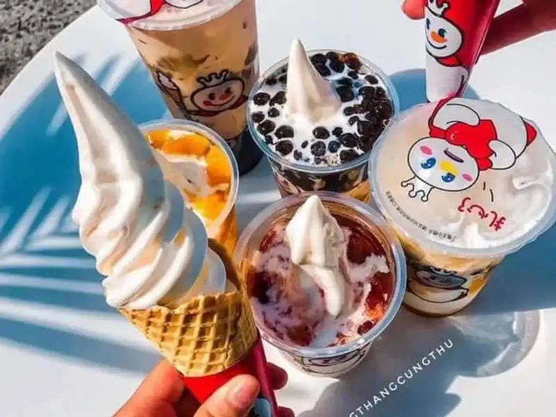 Cây Kem ốc quế 10k huyền thoại với lớp kem mịn màng, thơm ngậy mùi sữa và vỏ bánh giòn tan là món ăn giải nhiệt tức thì. Trà chanh lô hội hay Trà sữa trân châu đường đen cũng đều mang hương vị tươi mới, ngọt ngào, phù hợp với khẩu vị đại chúng.