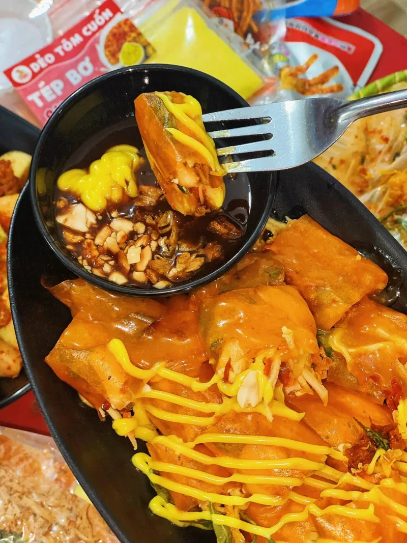 Ăn vặt Yến Võ là một địa chỉ quen thuộc của nhiều tín đồ bánh tráng. Quán gây ấn tượng với những món bánh tráng độc đáo, từ chiếc bánh tráng cuốn có độ dai đặc trưng đến bánh tráng mỡ hành tóp mỡ thơm lừng, hứa hẹn một trải nghiệm quà chiều mới lạ.