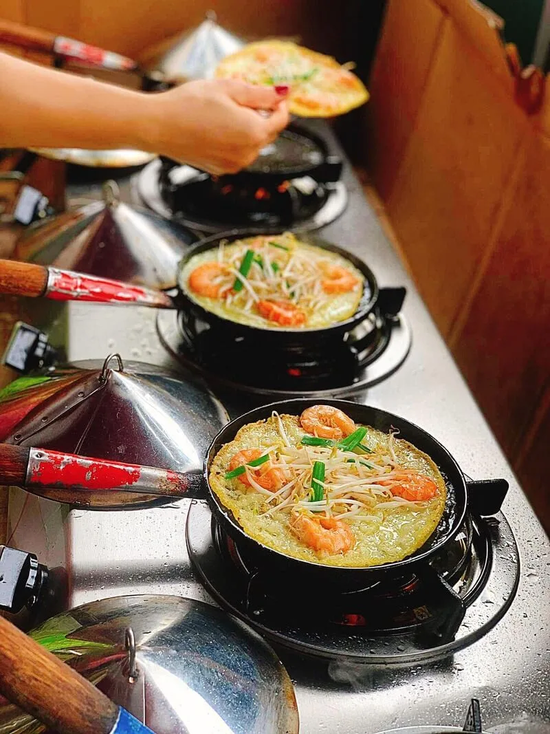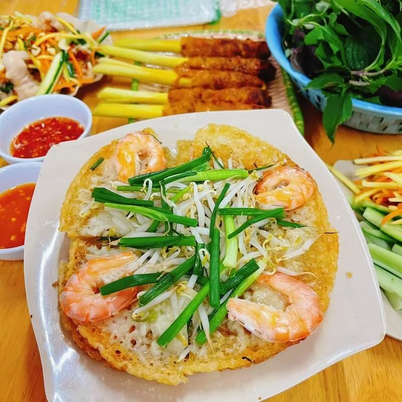 Là một địa chỉ không thể bỏ qua cho các tín đồ mê bánh xèo, quán Bánh xèo tôm nhảy Bà Loan tại 107 An Dương Vương mang đến hương vị bánh xèo tôm nhảy và nem lụi chuẩn vị miền Trung. Với chiếc bánh xèo vàng ươm, giòn tan, không ngấm dầu và những xiên nem lụi nướng sả thơm phức, đây là điểm đến lý tưởng cho một bữa ăn xế chiều "nhức nách".