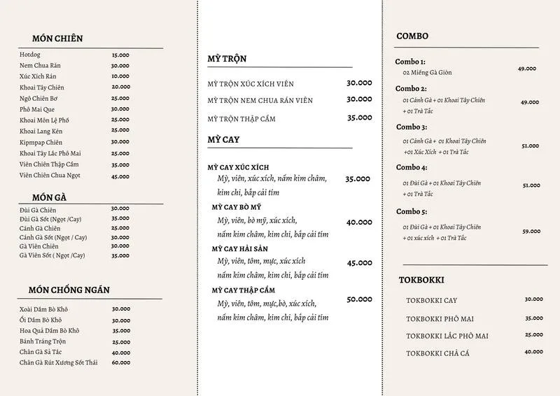 Thực đơn của quán là một "thiên đường" ăn vặt với đầy đủ các món được yêu thích:
