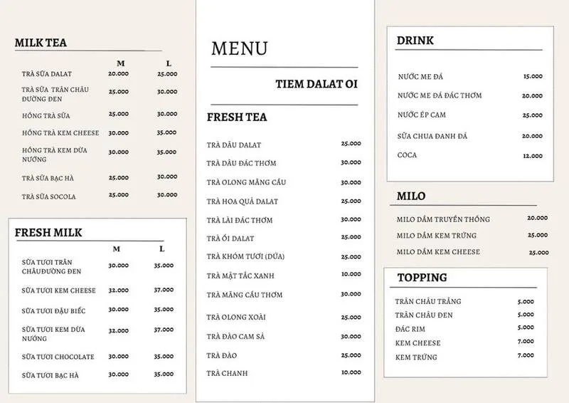 Với thực đơn đa dạng "món gì cũng có" từ ăn vặt, ăn no đến giải khát, Tiệm Dalat Ơi là một lựa chọn hoàn hảo cho các bạn trẻ. Nếu bạn đang tìm một nơi có đồ ăn ngon, hợp trend và giá cả phải chăng, đừng ngần ngại ghé qua 34 Nguyễn Văn Trỗi.