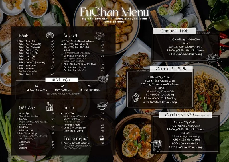 FuChan - Food&Drink là điểm hẹn lý tưởng cho tín đồ ăn vặt tại Vinh với thực đơn đa dạng, hấp dẫn từ đồ chiên, món trộn đến trà sữa, soda mát lạnh. Không gian hiện đại, trẻ trung kết hợp phong cách phục vụ thân thiện giúp FuChan trở thành điểm đến yêu thích của nhiều bạn trẻ sau giờ học, tan làm hay cuối tuần tụ họp.