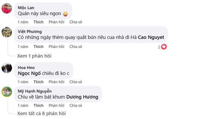 Những đánh giá của người dùng trên hội nhóm facebook về quán bún riêu ốc bà Hà