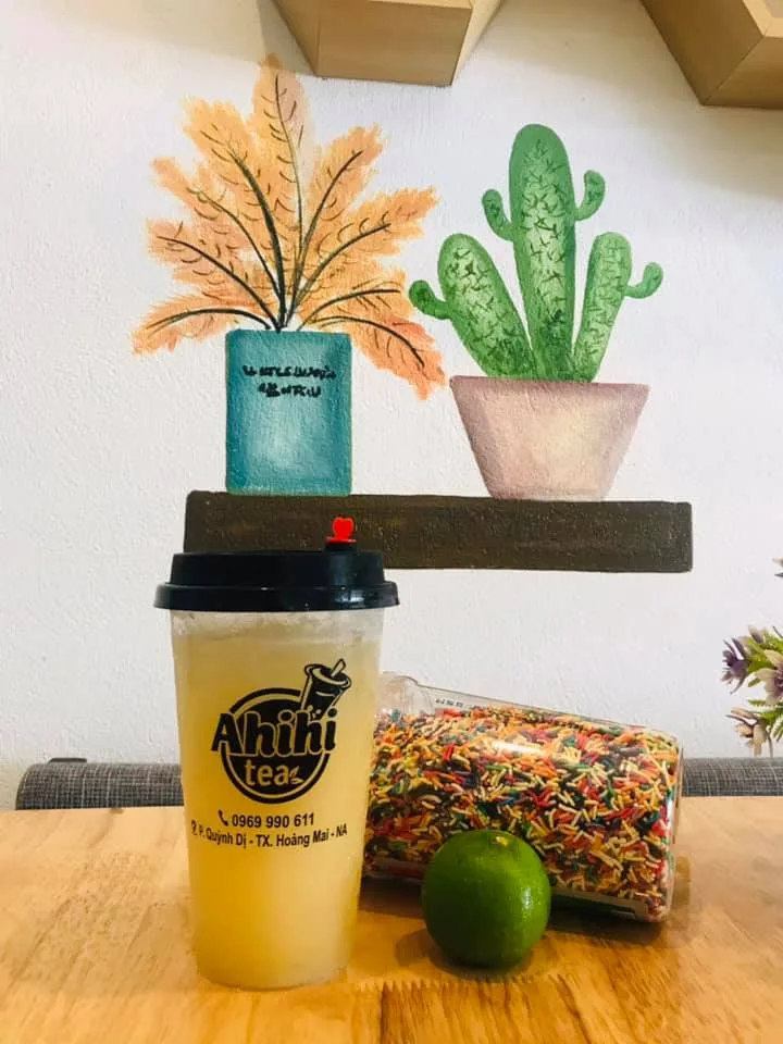 Ahihi Tea là một quán trà sữa và đồ ăn vặt quen thuộc tại thị xã Hoàng Mai cũ, đặc biệt nổi tiếng với các chương trình khuyến mãi hấp dẫn. Quán có vị trí thuận lợi, gần khu vực trường học, thu hút đông đảo học sinh, sinh viên.