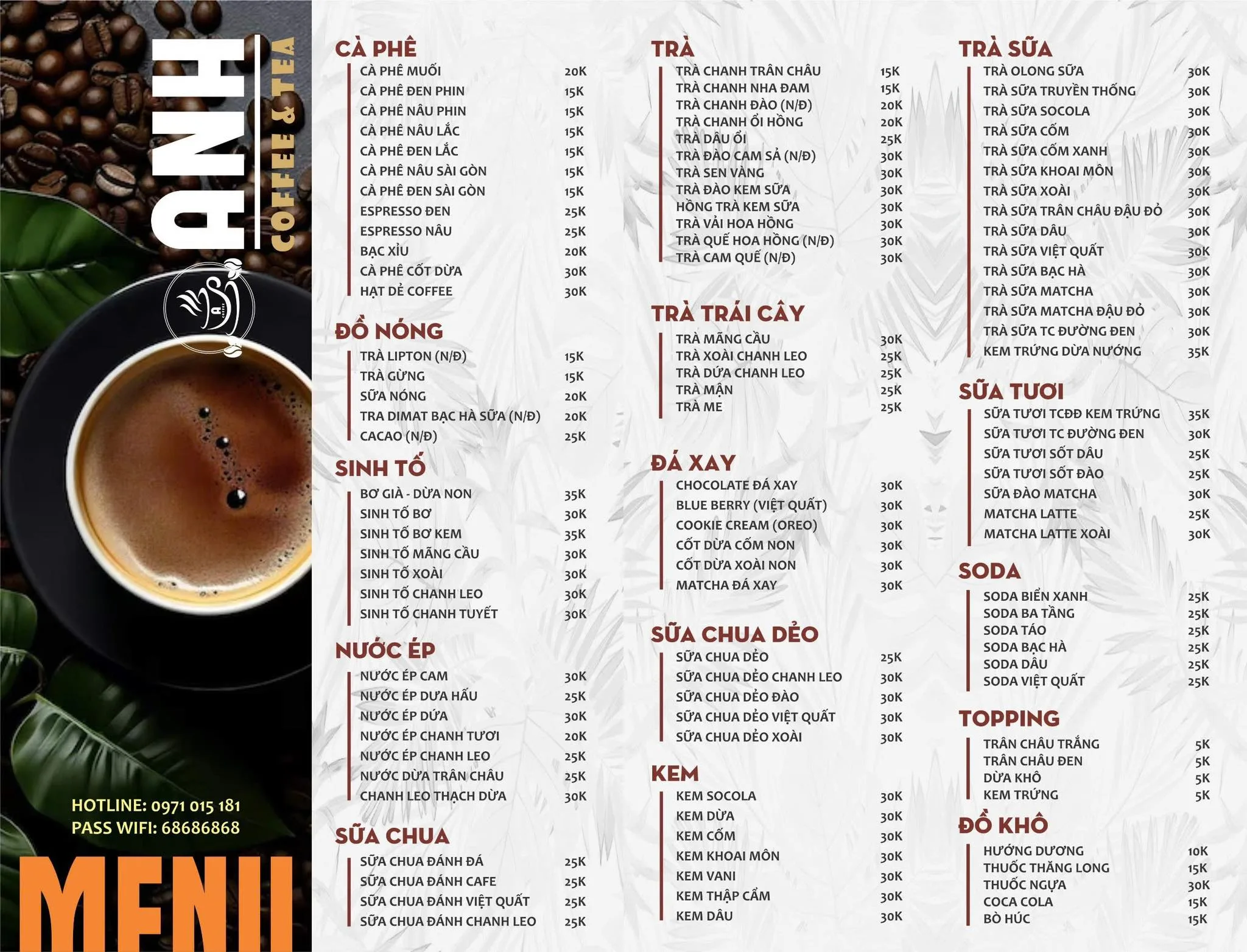 Anh Coffee & Tea là một quán cà phê và trà sữa nổi bật với không gian trẻ trung và menu đa dạng. Quán là địa điểm tụ tập lý tưởng của giới trẻ và gia đình trong khu vực.