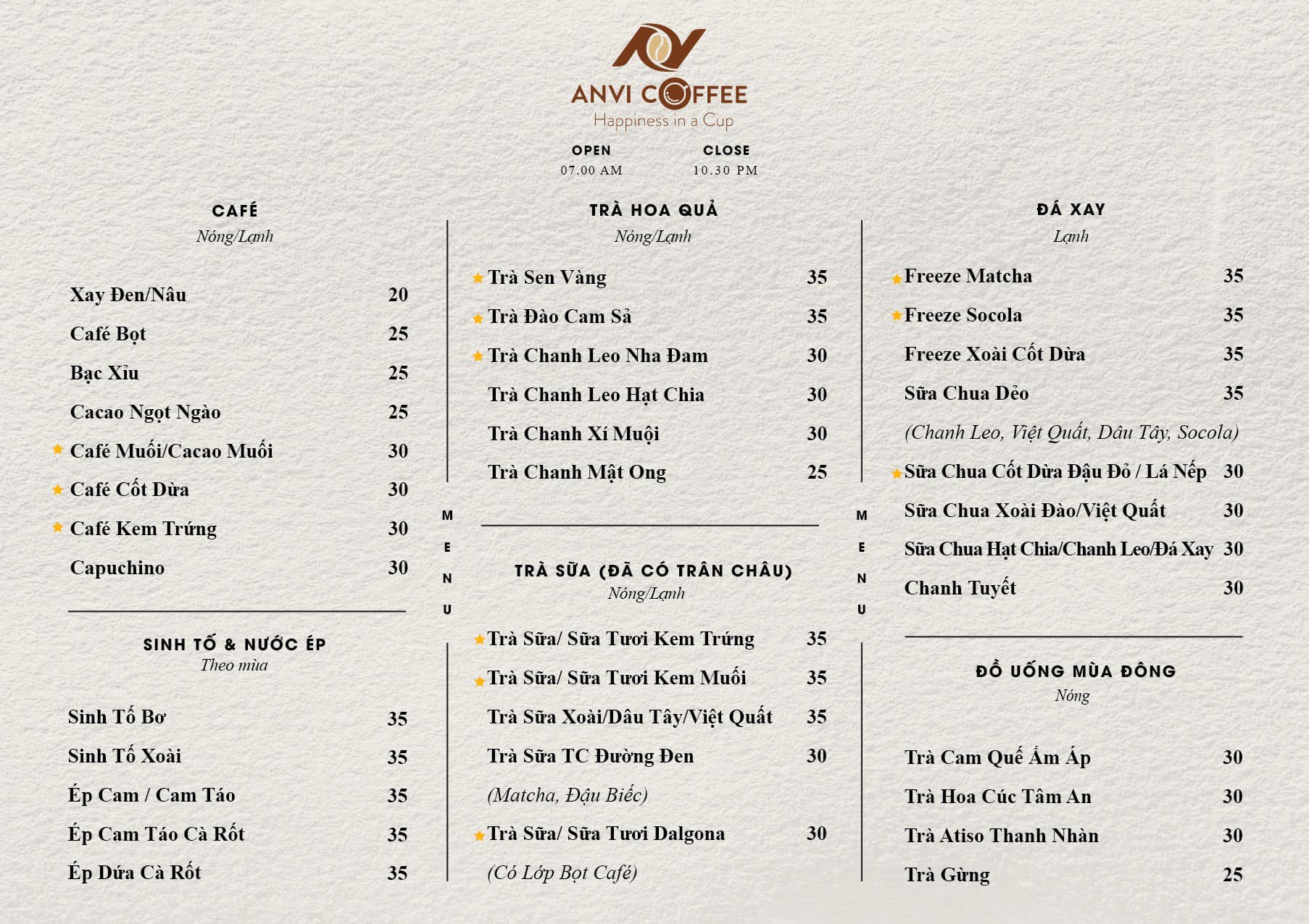 Anvi Coffee & Books là một quán cà phê sách tại thành phố Vinh, nổi tiếng với không gian yên tĩnh và ấm cúng, lý tưởng cho việc học tập, làm việc và đọc sách. Quán cung cấp hệ thống bàn ghế hiện đại, Wi-Fi mạnh và nhiều đầu sách đa dạng, tạo nên một "thư viện nhỏ" giữa lòng thành phố