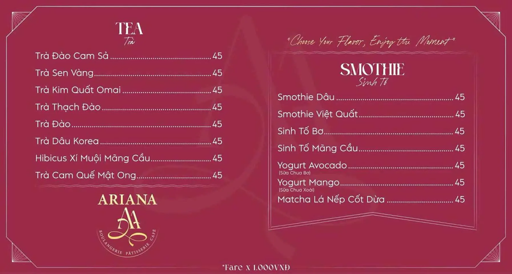 Ariana là một tiệm bánh và cà phê nơi mỗi buổi sáng đều trở nên đặc biệt hơn. Đây là một không gian "dịu dàng", nơi bạn có thể tìm một góc yên tĩnh để "nạp pin", làm việc, hoặc đơn giản là nhâm nhi ly nước cùng bánh ngọt tinh tế. Quán là điểm hẹn lý tưởng để bắt đầu một ngày mới nhẹ nhàng.