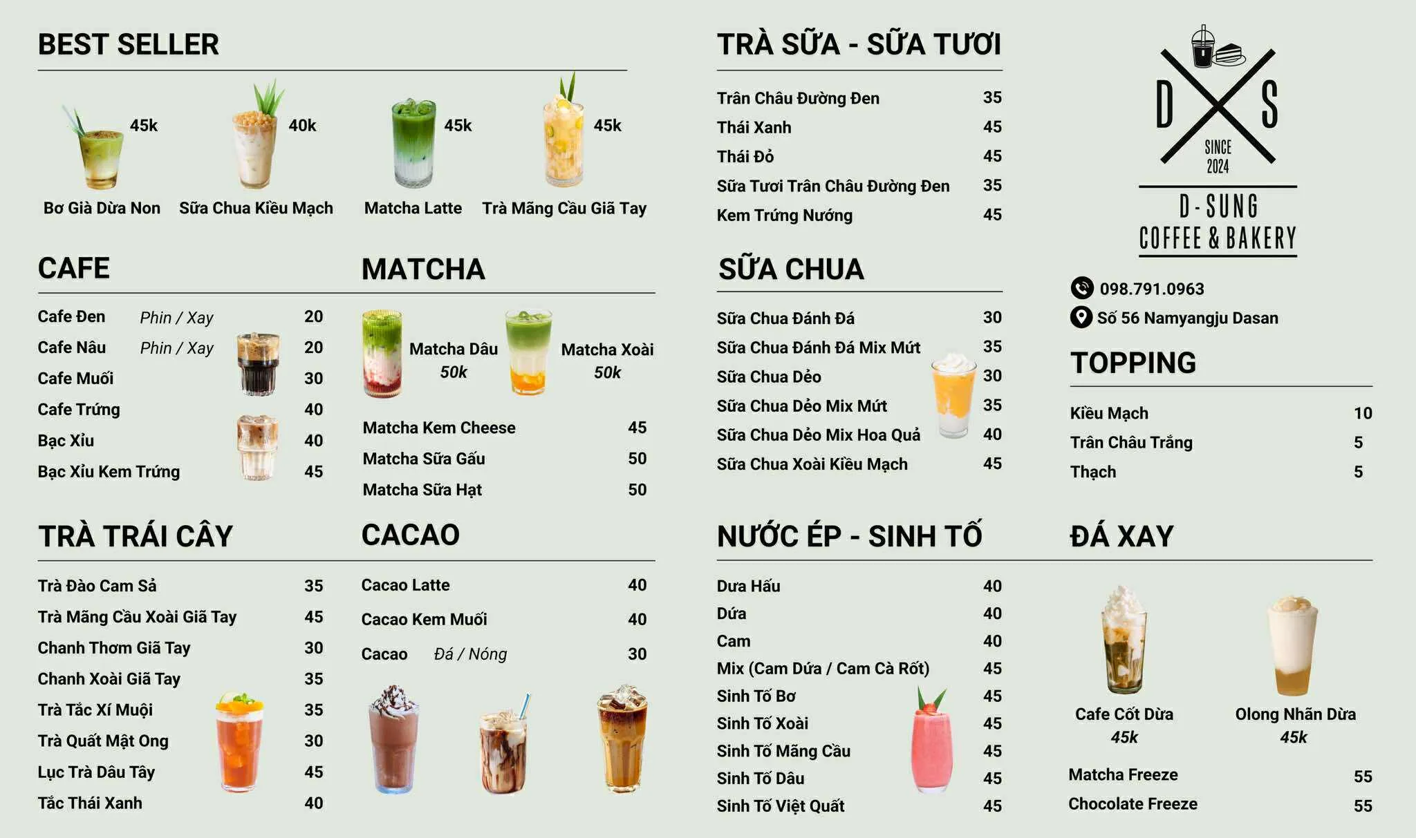 D-Sung Coffee & Bakery là một quán cà phê xinh xắn, mang đến một làn gió mới cho khu vực Quán Bàu. Quán được yêu mến nồng nhiệt nhờ sự tâm huyết và nhiệt tình của anh chị chủ quán, từ việc sáng tạo món mới mỗi ngày cho đến việc sẵn sàng làm "phó nháy" chụp những bức ảnh đẹp cho khách. Với không gian rộng rãi, menu đặc sắc và chất lượng chỉn chu, D-Sung là điểm tụ tập bạn bè mới không thể bỏ qua.