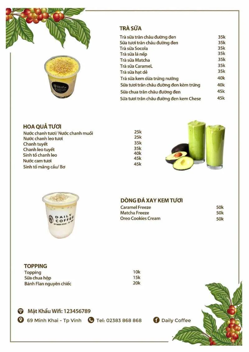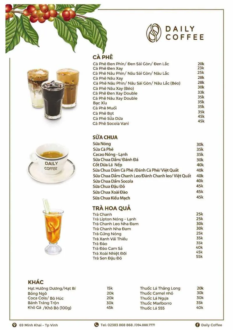 Daily Coffee là một điểm đến có hai "linh hồn": vừa là quán quen của những khách hàng trung thành yêu thích hương vị cà phê đậm đà, vừa là một "studio" thu nhỏ cho các tín đồ chụp ảnh concept theo mùa. Quán gây ấn tượng mạnh mẽ bởi "tâm huyết và sự tử tế" của cả chủ quán lẫn nhân viên, luôn nhiệt tình và sẵn sàng hỗ trợ khách hàng hết mình.