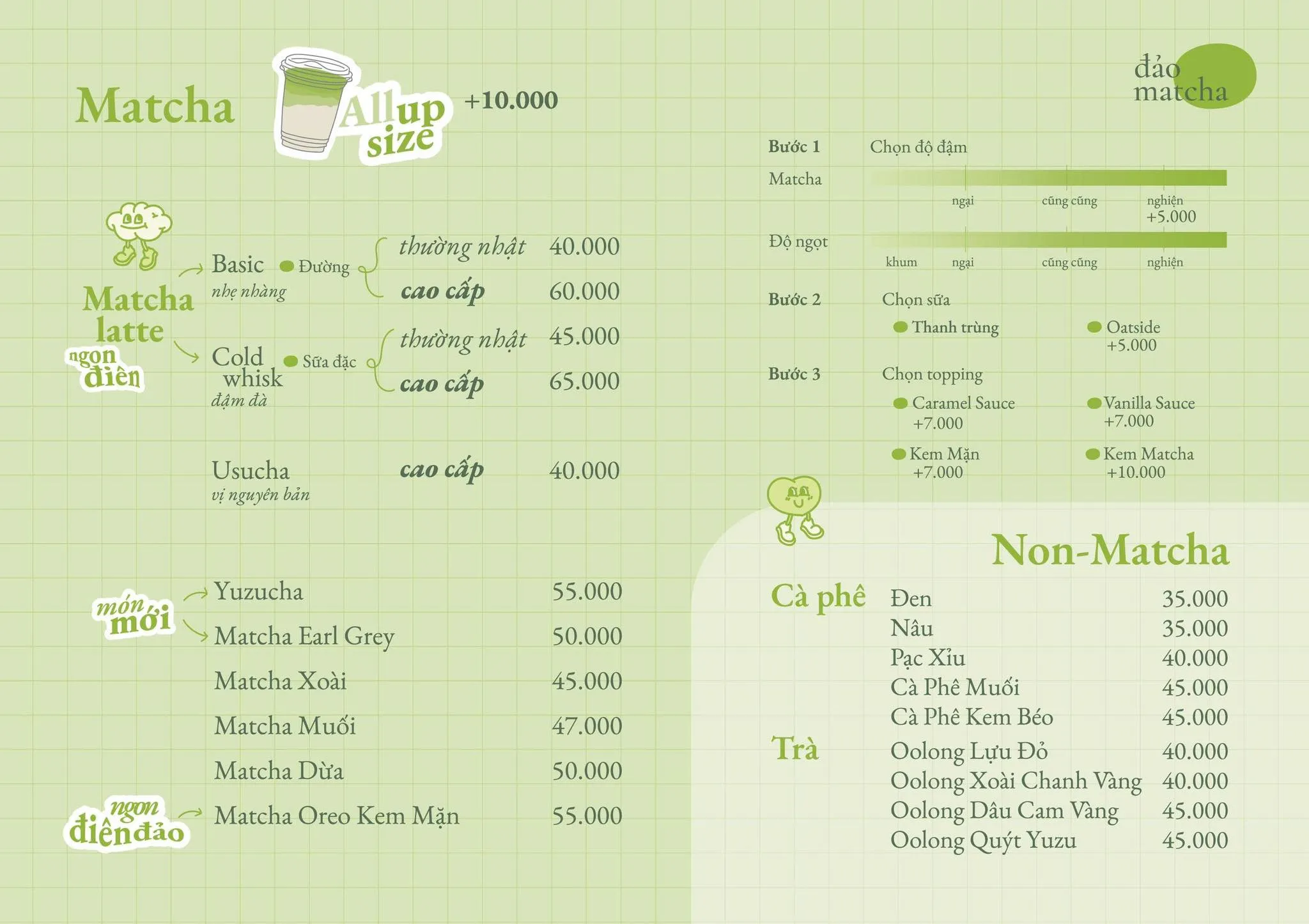Đảo Matcha là một địa chỉ không thể bỏ qua cho các "cư dân" mê matcha tại Vinh. Đây là nơi bạn có thể tìm thấy những món đồ uống chuyên sâu về matcha, giúp "refresh" tâm hồn và nạp lại năng lượng. Quán không chỉ tập trung vào matcha mà còn có menu đa dạng với cà phê và các loại trà khác, trong một không gian xanh mát và dễ chịu.