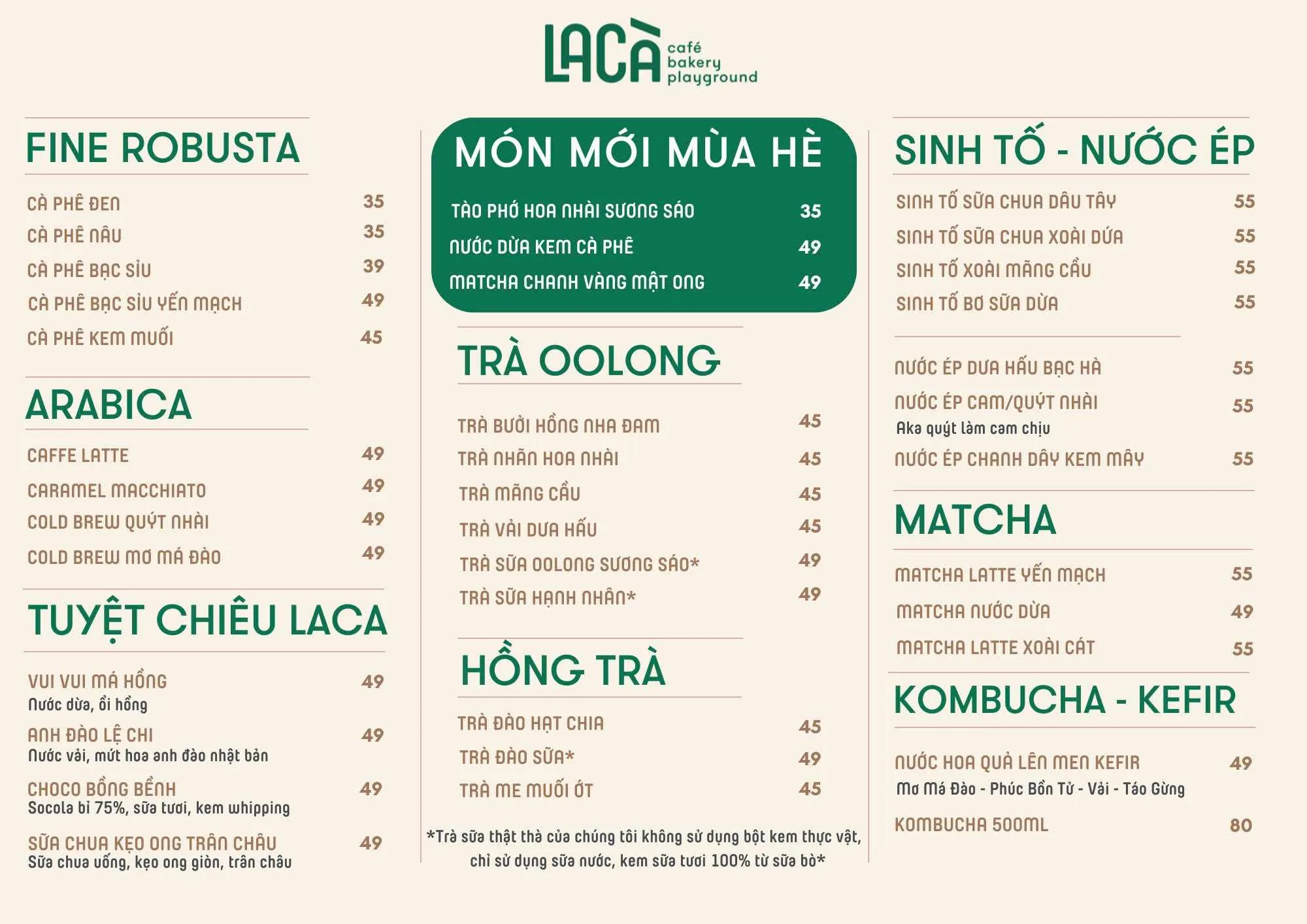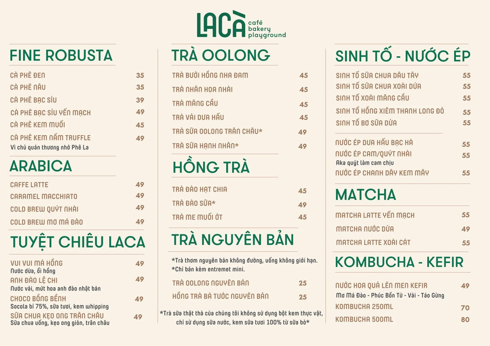 La Cà Café, Bakery, Playground là một trong những quán đề cao "sự tử tế" trong từng nguyên liệu và cách phục vụ. Nơi đây không chỉ nổi tiếng với không gian thoáng đẹp, nhiều cây xanh mà còn là "chân ái" cho các tín đồ bánh ngọt và các loại nước uống độc đáo theo mùa