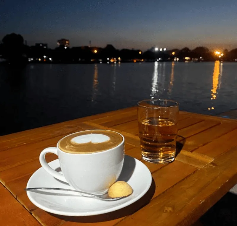 Lá Càfe là một địa điểm quen thuộc với không gian xanh mát và mặt hồ bình lặng của Hồ Goong. Quán được yêu thích bởi không khí trong lành, view đẹp và là nơi hội tụ đủ các yếu tố từ cà phê ngon, giá cả hợp lý đến hoàng hôn lãng mạn. Đây là điểm đến lý tưởng cho những ai tìm kiếm sự bình yên và thư giãn.