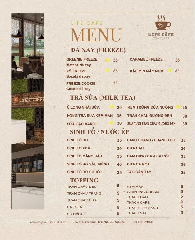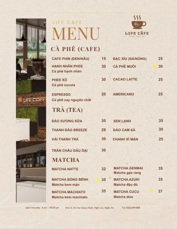 Life Càfe là một địa điểm quen thuộc với cư dân thị trấn Quán Hành cũ, mang đến một không gian thư giãn, tràn đầy cảm hứng. Với slogan "Nơi cảm hứng bắt đầu từ một tách nước", quán hướng đến việc tạo ra những trải nghiệm thư giãn và ý nghĩa cho khách hàng.