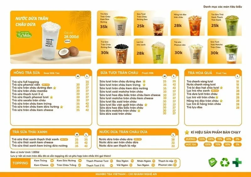 Mambo Tea đã chính thức trở thành một trong những chuỗi trà sữa có nhiều chi nhánh nhất tại Vinh, khẳng định vị thế là thương hiệu quen mặt và rất được yêu thích. Với mô hình chủ đạo là bán mang đi (takeaway) và giao hàng, Mambo Tea chinh phục khách hàng, đặc biệt là giới học sinh-sinh viên, nhờ menu đa dạng, chất lượng sạch sẽ, chỉnh chu và giá cả cực kỳ hợp lý.