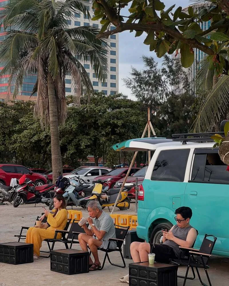 5. Chỗ để xe: Chỗ để xe rộng rãi xung quanh xe cafe