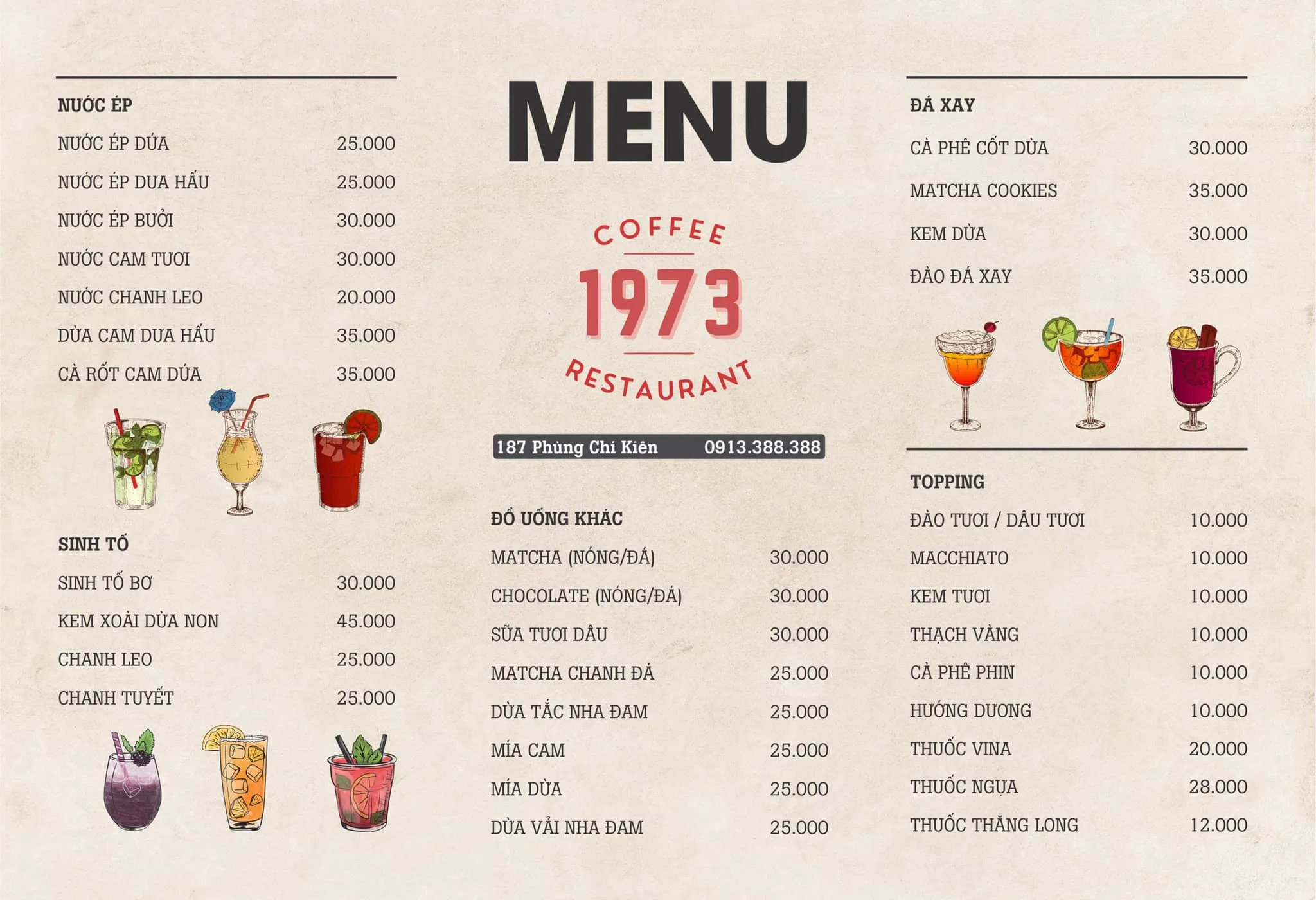 No 1973 Coffee là một "tọa độ sống ảo cực xinh" với không gian được thiết kế theo phong cách Hàn Quốc tinh tế. Đây là điểm đến lý tưởng vừa có đồ uống ngon, giá hợp lý, vừa có các hoạt động tương tác cho nhóm bạn. Quán phù hợp cho cả nhu cầu học tập yên tĩnh và tụ tập bạn bè.