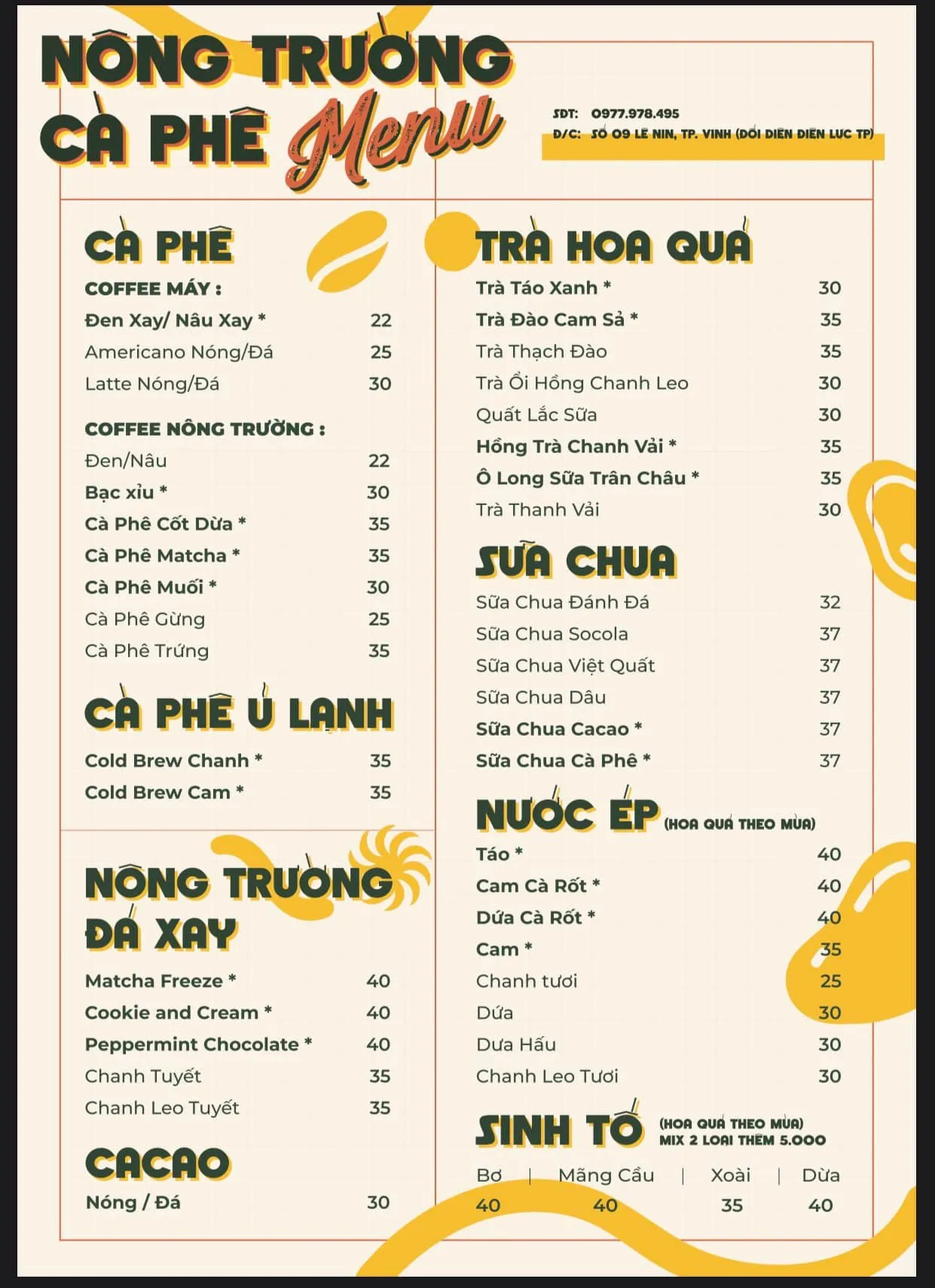 Nông Trường Cà Phê tại số 9 Đại lộ Lê Nin, là quán cà phê nổi tiếng với phong cách bao cấp độc đáo, mang đến sự kết hợp giữa nét hoài niệm và sự năng động, trẻ trung. Quán phục vụ đa dạng các loại đồ uống, đặc biệt là cà phê, với không gian rộng rãi, thích hợp cho việc tụ tập bạn bè và đồng nghiệp.