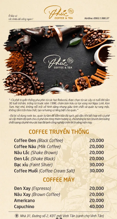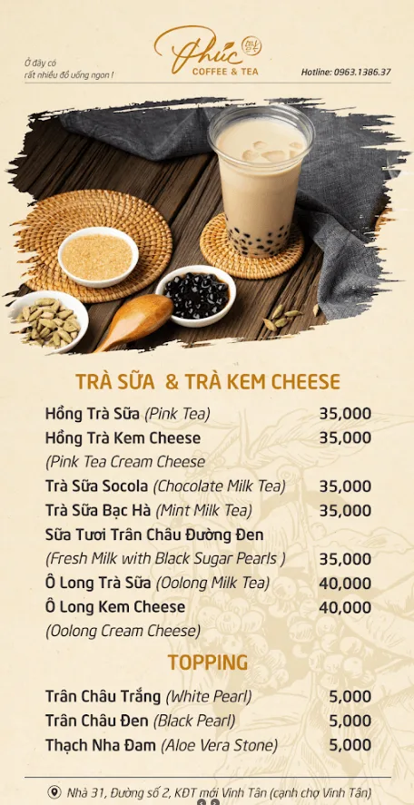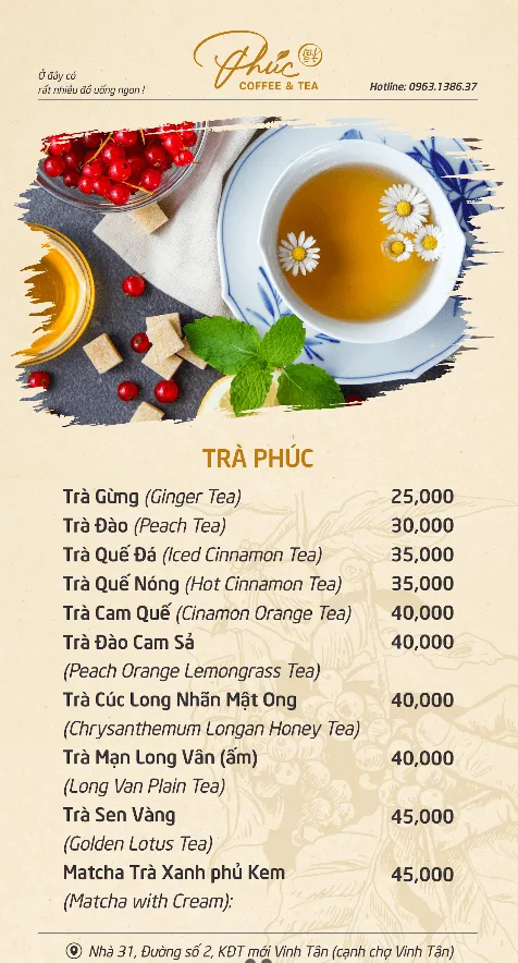 Phúc Coffee & Tea là một quán cà phê tại khu đô thị mới Vinh Tân. Quán nổi bật với không gian nhẹ nhàng, yên tĩnh và đồ uống ngon, phù hợp để thư giãn sau những giờ làm việc căng thẳng.