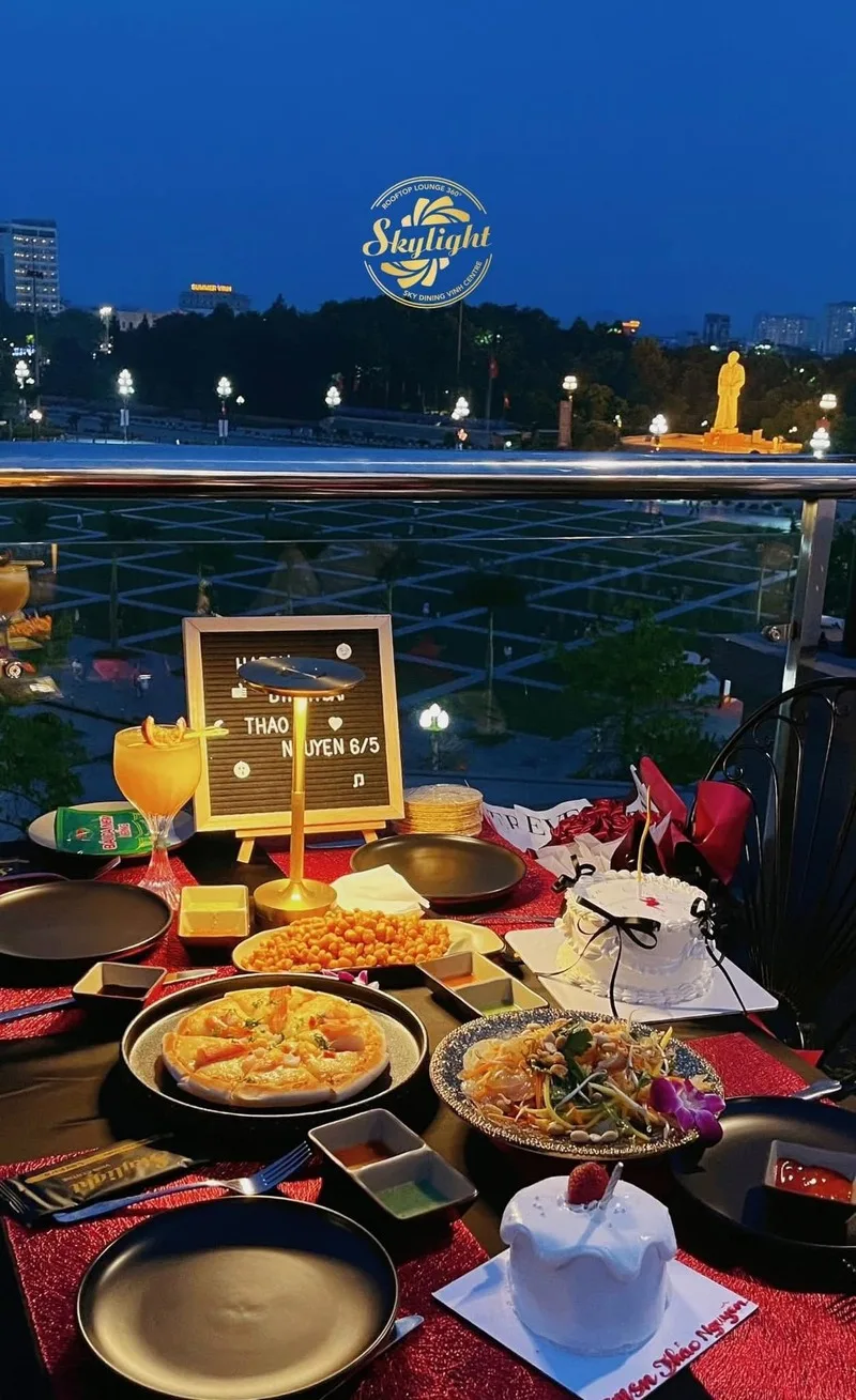 SCTC Skylight Vinhcentre là một trong những điểm hẹn lý tưởng và sang trọng bậc nhất tại Vinh, tọa lạc trên tầng thượng của TTTM Vincom Plaza. Nơi đây không chỉ là một quán cà phê, bar rooftop mà còn là một nhà hàng phục vụ đồ Âu, một sân khấu ca nhạc hoành tráng và là địa điểm ngắm pháo hoa đêm giao thừa "đỉnh nhất". Với view toàn cảnh thành phố, đây là lựa chọn hoàn hảo cho các buổi hẹn hò, họp lớp hay thưởng thức các sự kiện âm nhạc lớn.
