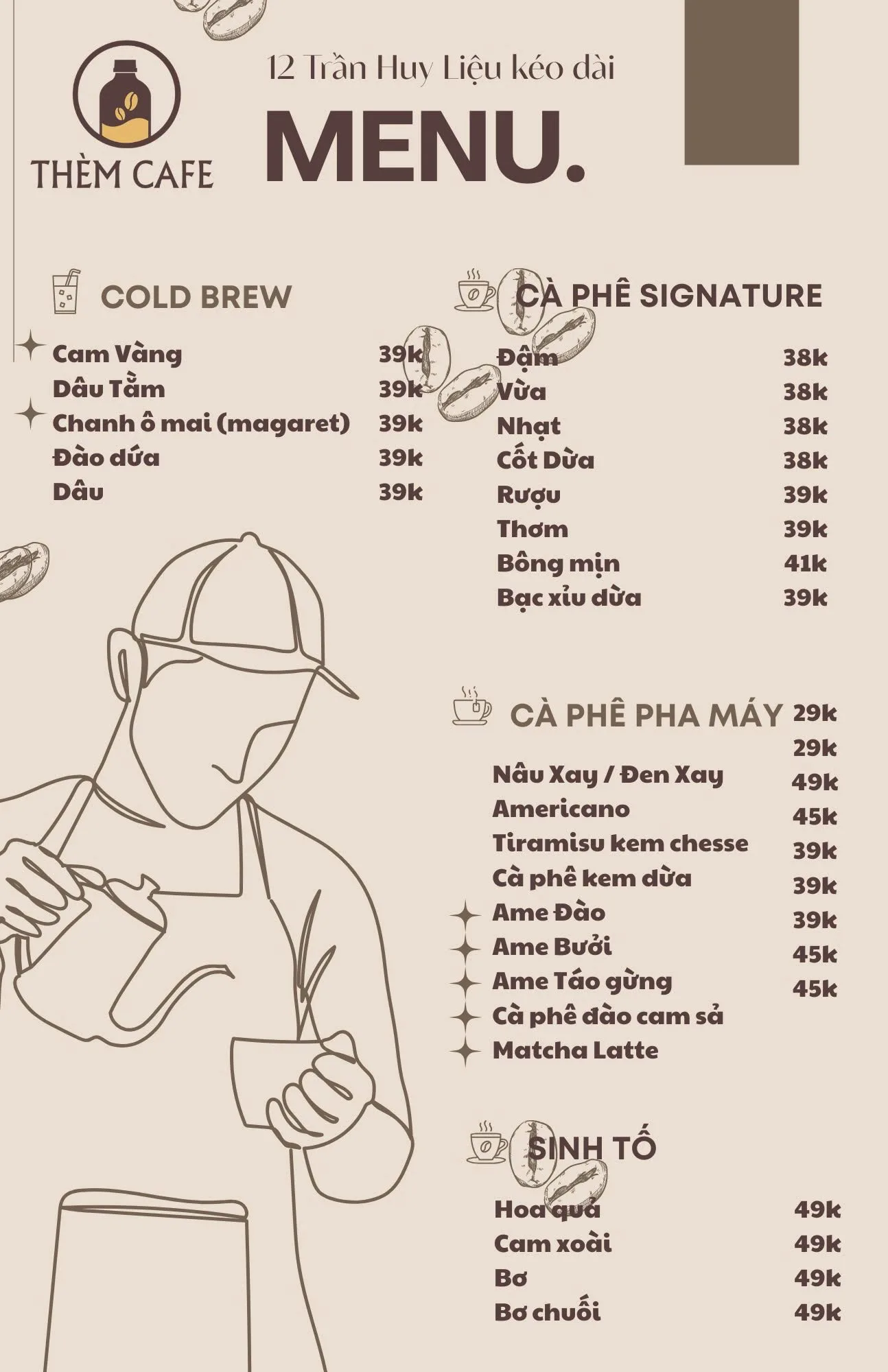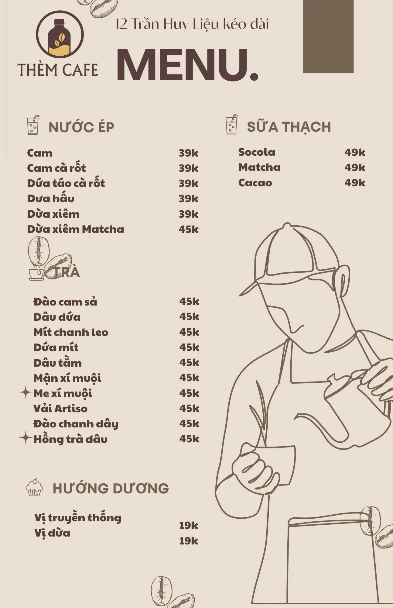 Thèm Cafe là một quán cà phê địa phương tại thành phố Vinh, được biết đến với không gian thoải mái, ấm cúng và chất lượng cà phê được nhiều người đánh giá cao. Quán có hai cơ sở, phục vụ đa dạng nhu cầu của khách hàng từ làm việc, học tập đến thư giãn