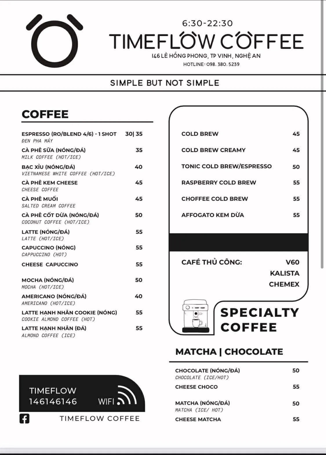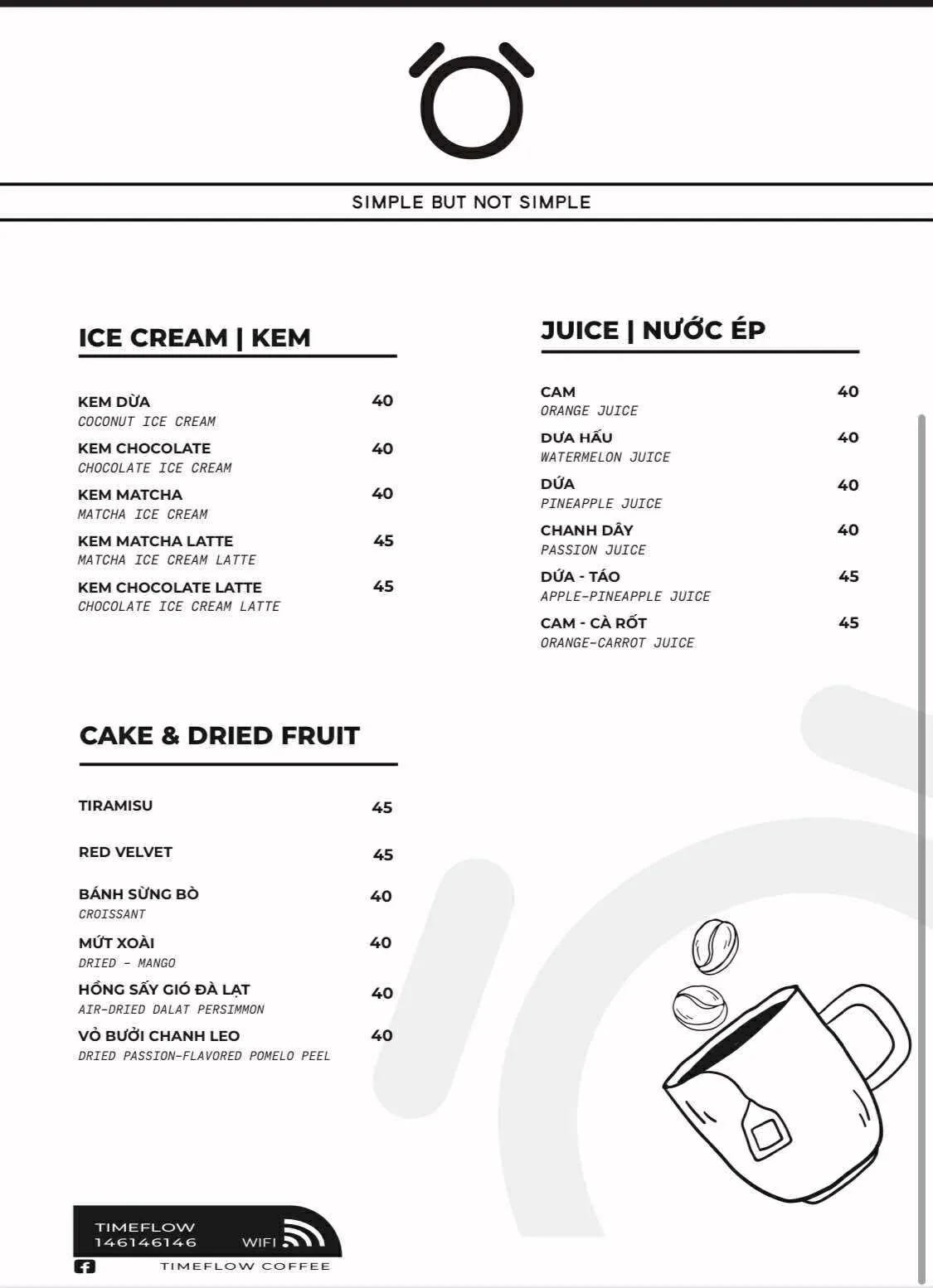 Timeflow Coffee là nơi bạn có thể tìm thấy những khoảnh khắc đáng trân trọng trong một không gian hiện đại, sang trọng và trang nhã. Quán không chỉ là một địa điểm check-in đẹp mắt, luôn được trang trí theo mùa lễ, mà còn chú trọng đến các món đồ uống tốt cho sức khỏe, giúp bạn "chạm vị thanh mát" và nạp lại năng lượng.
